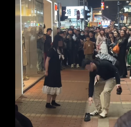 現場吸引大批市民圍觀,其間有路人勸女方冷靜,女方即怒吼「收嗲啦,關你X事啊!」、「我係癲婆啊!我係黐線㗎!」,狂兇路人;有路人欲救男友大喊:「我哋幫你報警好唔好!」男友則搖手示意不用,叫圍觀人群不要報警,邊撿起長髮女脫下的鞋子,邊靠近女友。影片至此結束。