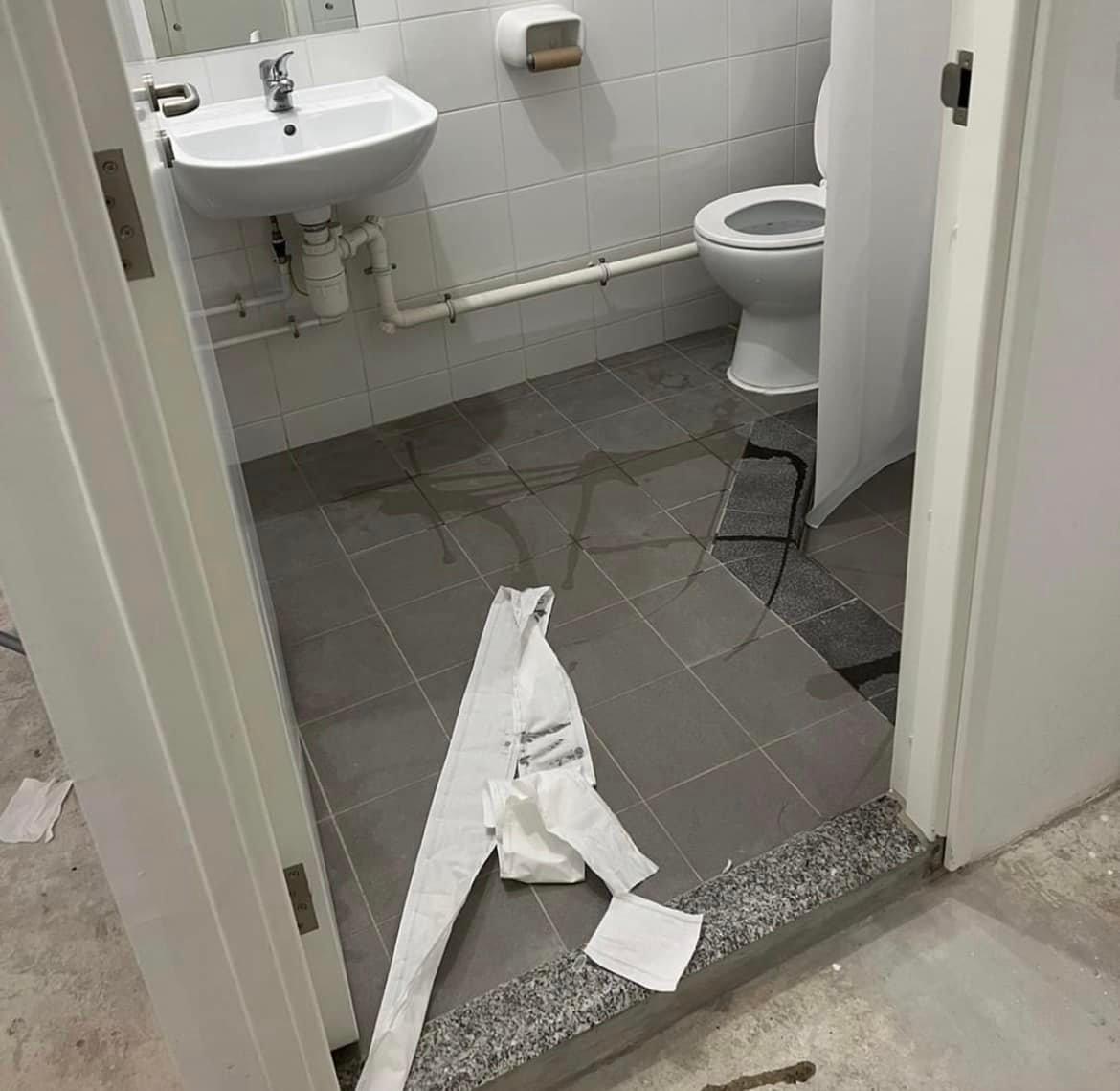 該圖片在fb「香港抗疫關注組」上載,發帖文的網民稱:「好恐怖,原來入隔離營精神會變成咁,皇后山隔離營有患者掟屎上天花版」。從相片可見,涉事單位極為凌亂和骯髒,客廳、廁所地板以至床褥上均有廁紙,更為恐怖的是,天花板、牆身及電掣等亦沾有啡色狀似糞便的物體,另有其他垃圾及不明水漬留在地上。