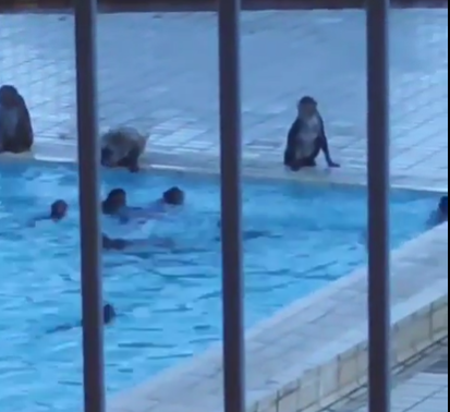 網上熱話|荃灣老圍馬騮族群落泳池游水降暑? 目擊者羡慕:幾嘆喇!