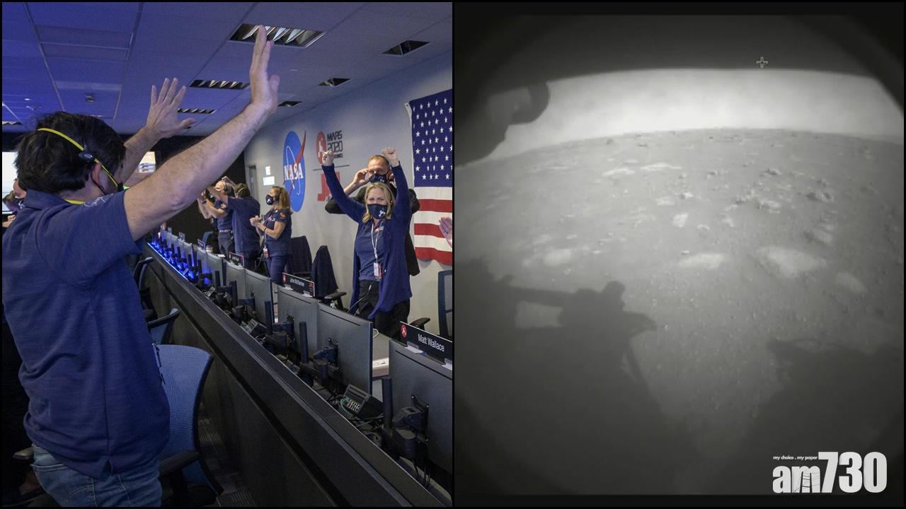美國火星探測器「毅力號」在香港時間清晨約5時,順利在火星著陸,太空總署地面工作人員歡呼慶祝。