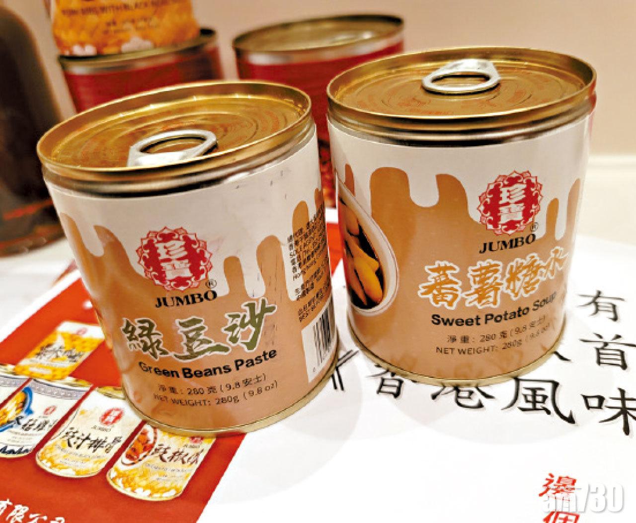 居家避疫下,有展商以罐頭應市,最新有番薯糖水、綠豆沙(圖3),亦帶來面世不足一年的豉汁排骨、豉椒鳳爪等點心系列。代表商戶的港九罐頭洋酒伙食行商會主席葉木良表示,疫情後推出點心罐頭方便市民煮食,亦希望推出富香港情懷的食品吸引顧客。