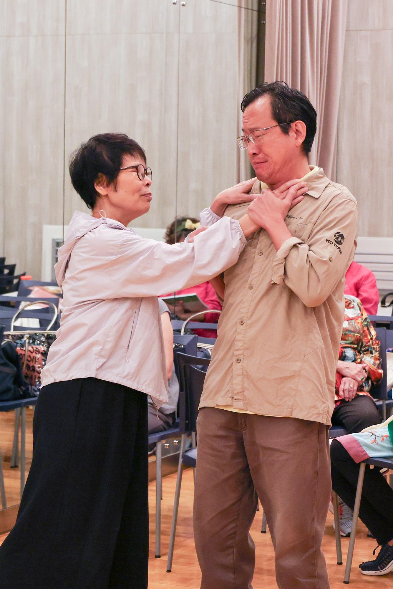 左起:導演蕭俊傑、學員勵梅和Berry,分享一班銀髮演員如何透過瘋狂搞笑,與觀眾一同反思與家人朋友的「不二關係」。