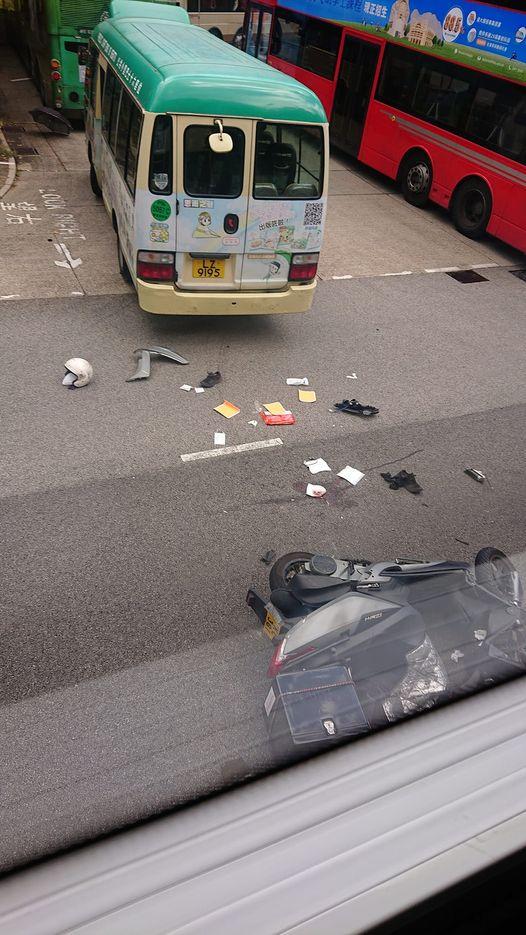 今日(24日)中午12時42分,一輛專線小巴於慈雲山蒲崗村道富山公共運輸交匯處,撞倒一輛電單車,該名姐賴的鐵騎士應聲被撞飛,墮地受傷,重創昏迷。