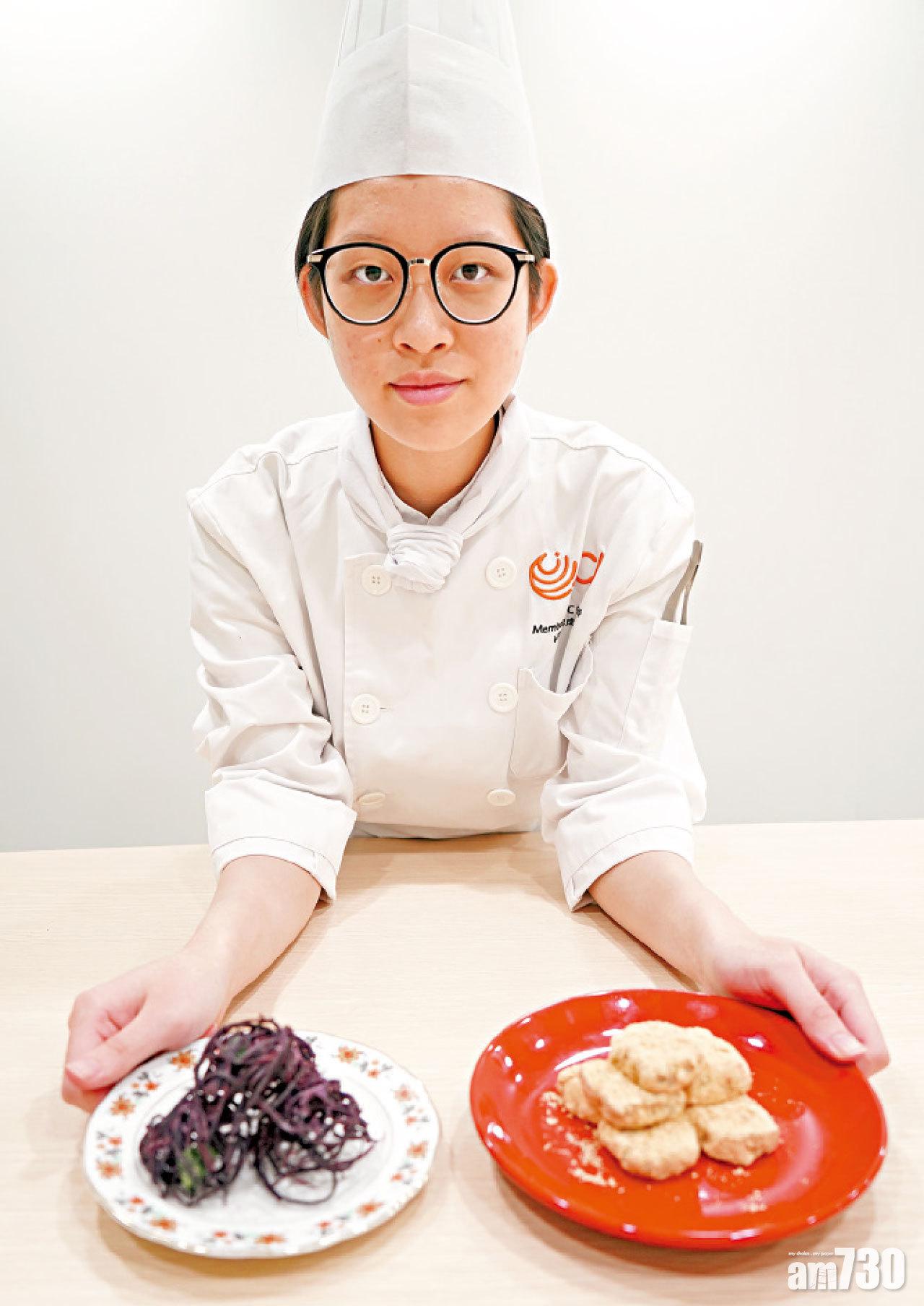 20歲的吳皓晴(圖1)受爺爺和外婆薰陶,自小熱愛入廚,入讀VTC後,更醉心研究新菜色,並參與校內電台關於飲食的節目製作,其中一集題為「家的味道」,但籌備過程中婆婆病重,令她感受更深。她指,她與外婆不是同住,過去亦未曾為茹素的外婆下廚,至對方病重才有感要把握時間盡孝,於是在外婆病重那年的聖誕,特意炮製一道素卡邦尼意粉,當中以蘑菇代替煙肉。外婆初嘗孫女手藝,大力支持皓晴當廚師,豈料這次為外婆做菜是首次、亦是最後一次。事件令她更為感觸,更大決心要延續家人廚藝,因「家的味道係無得取代嘅味道。」