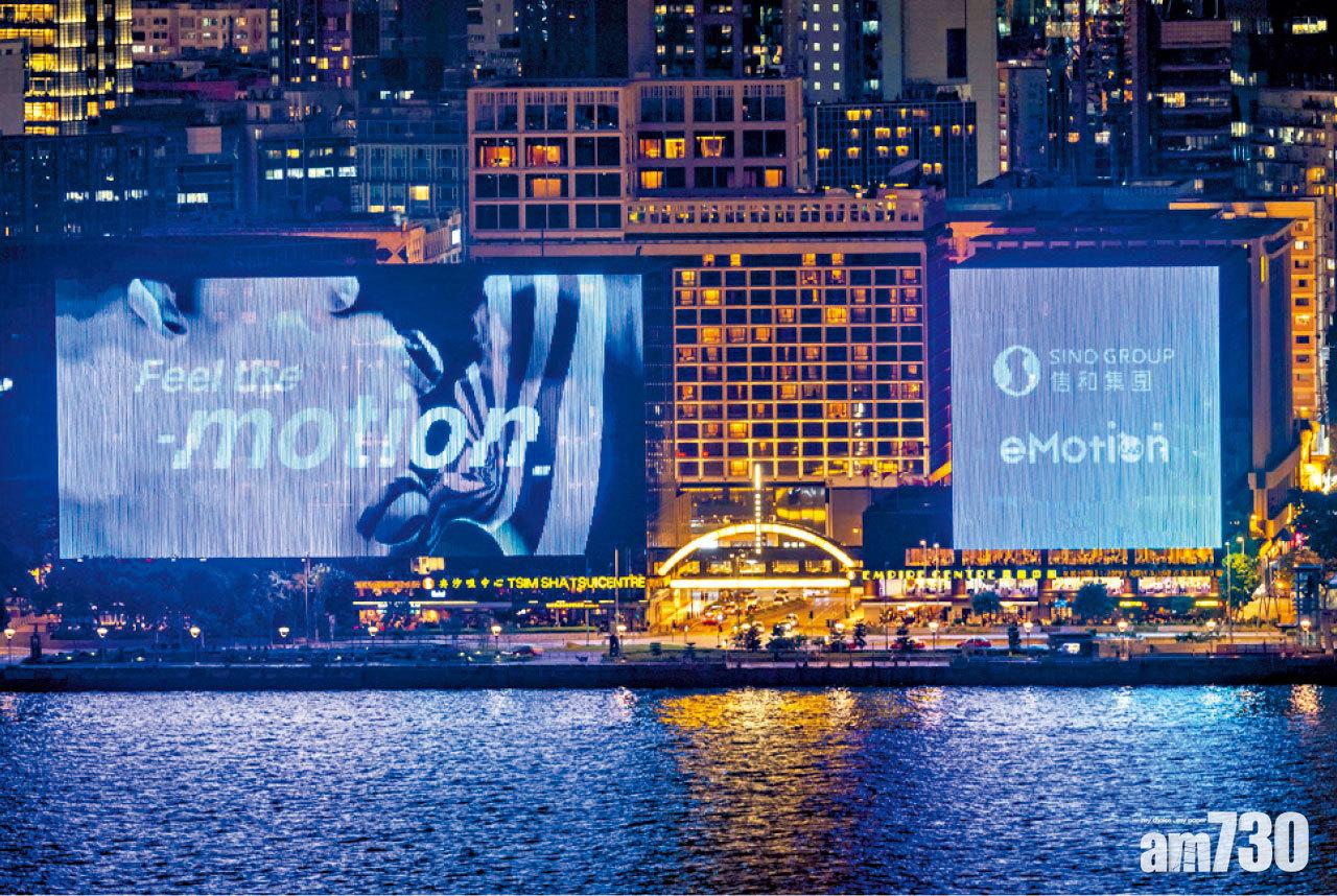 ▲集團旗下的尖沙咀中心及帝國中心燈飾成為維港極矚目的風景。