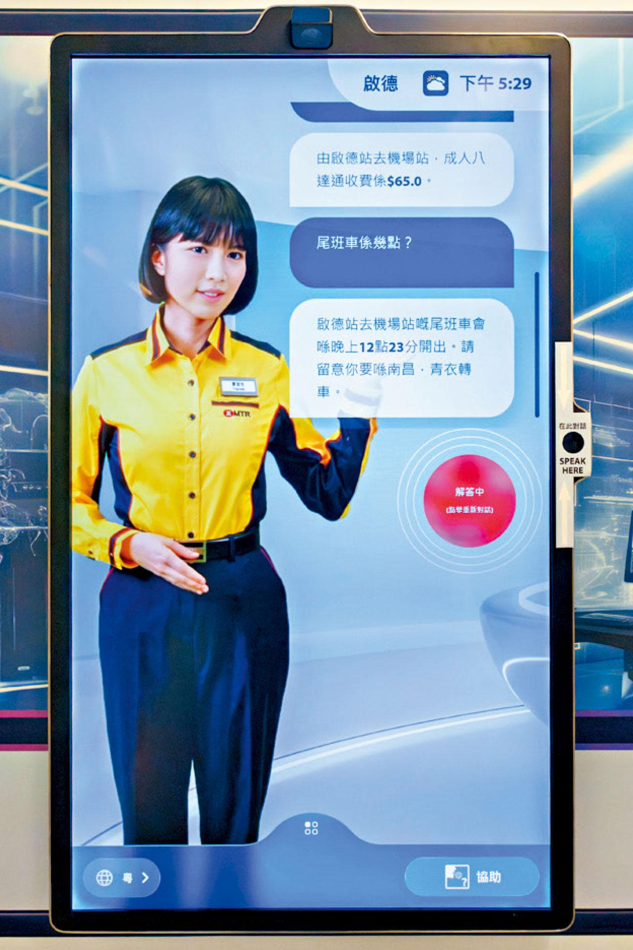 今日是3.8婦女節,近月行經港鐵鰂魚涌站和啟德站可有發現有一個樣子甜美,親切可人的港鐵「女職員」回答乘客問題。新入職的「虛擬服務大使」Tracy能成功加入港鐵,實有賴港鐵兩名年輕女同事擔當Tracy「經理人」,不單為她設計出清秀俏麗外形,並制訂可迅速解答問題的題目庫,同時為免乘客感覺「對住件死物」溝通,Tracy會用上更多人性化描述字眼,恍如與真人對話。港鐵指,會探討其他車站是否也可引入「虛擬服務大使」。