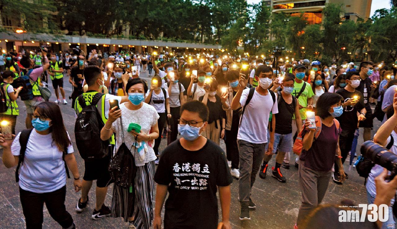 大批市民晚上7時行出遮打花園,亮起手機的燈光,向中環方向以流水式遊行;途中高喊「香港獨立,唯一出路」、「解散警隊,刻不容緩」等口號。隨著加入隊伍的人數增多,大批人走出馬路,佔據皇后大道中及雪廠街等一帶多條行車線,交通嚴重受阻。有人以雨傘及雪糕筒堵路,但被警員阻止,一名男子被制服。防暴警趕到德輔道中和畢打街一帶,警方喝令在場人士包括記者:「上返行人路,否則使用胡椒噴劑!」立法會議員許智峯亦在場協調和監察警方行動,認為香港人心不死,無懼死亡和被捕都堅持企出來。