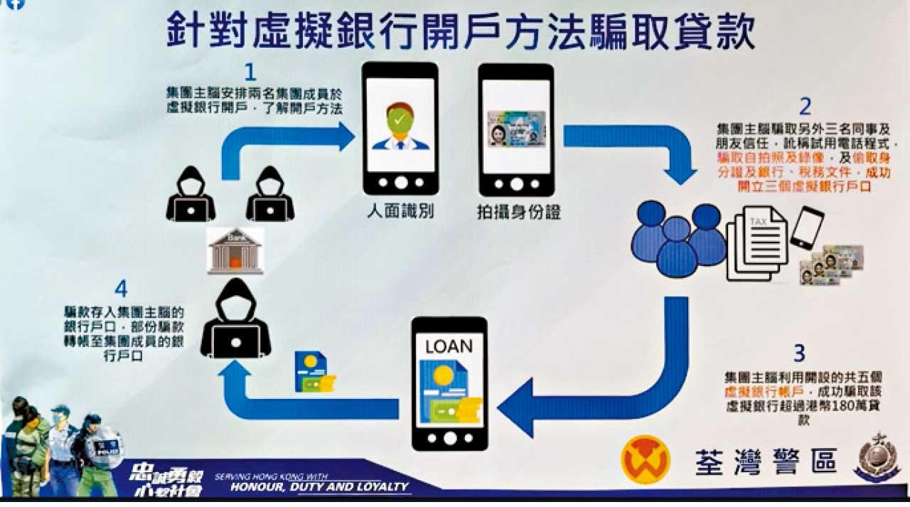 警方荃灣警區偵緝總督察史廣鴻和荃灣警區科技罪案隊督察麥海文昨交代案情指,申請虛擬銀行的戶口,除要拍攝身份證,亦要做人面識別。雖然相信今次騙案是個別事件,但提醒市民小心保護個人資料,包括個人肖像的影片和相片。