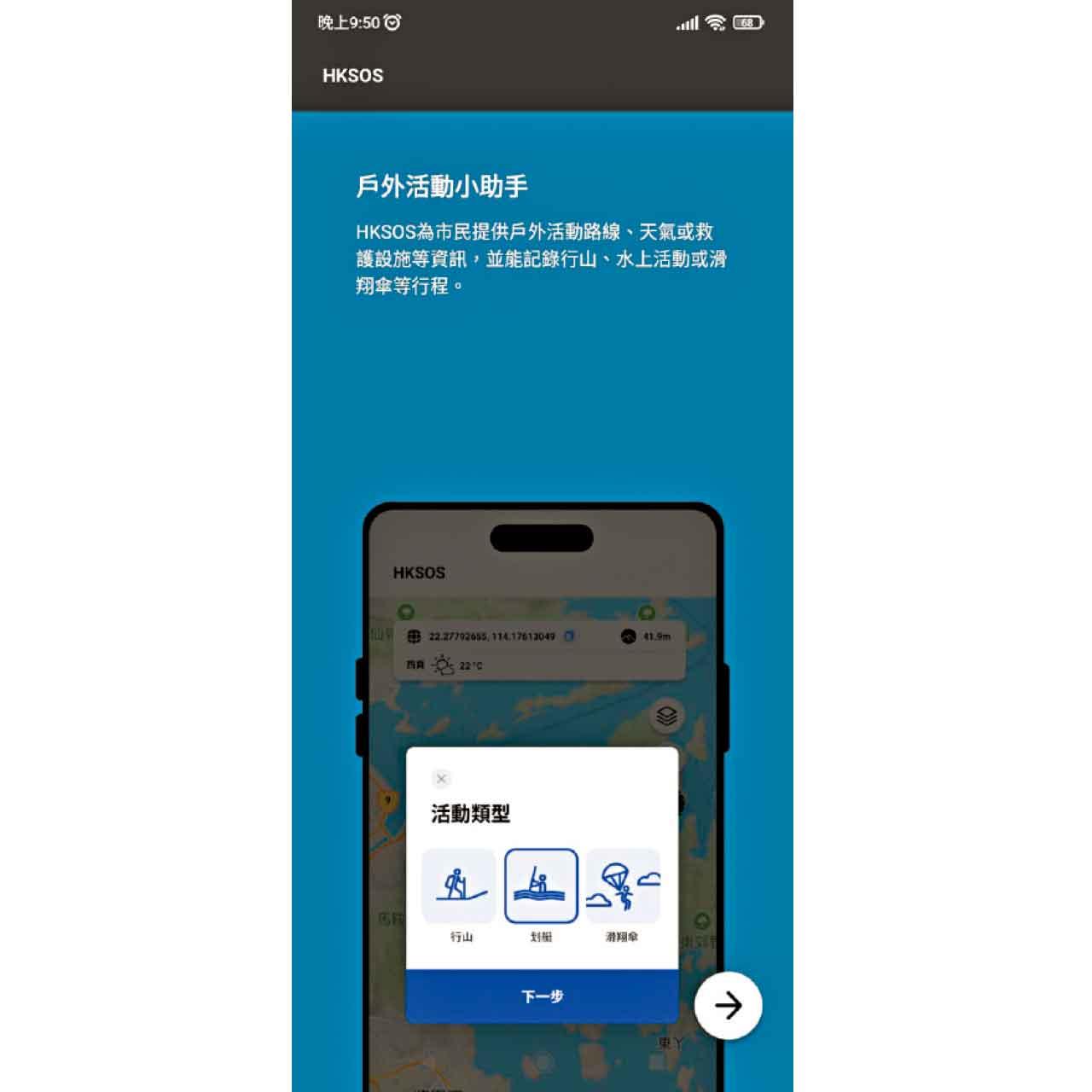 以「HKSOS」命名的「HKSOS越野跑」,昨早在山頂舉行,逾千人參與。出席活動的蕭澤頤表示,疫情後,市民對健康追求日增,而深度遊的推廣也令參加戶外活動的人數大幅上升。部分市民輕信網上行山攻略、獨自出行,甚至在惡劣天氣下冒險活動,導致事故數字及相關受傷或死亡個案有所上升。他呼籲市民向親友推廣HKSOS,增加保障。