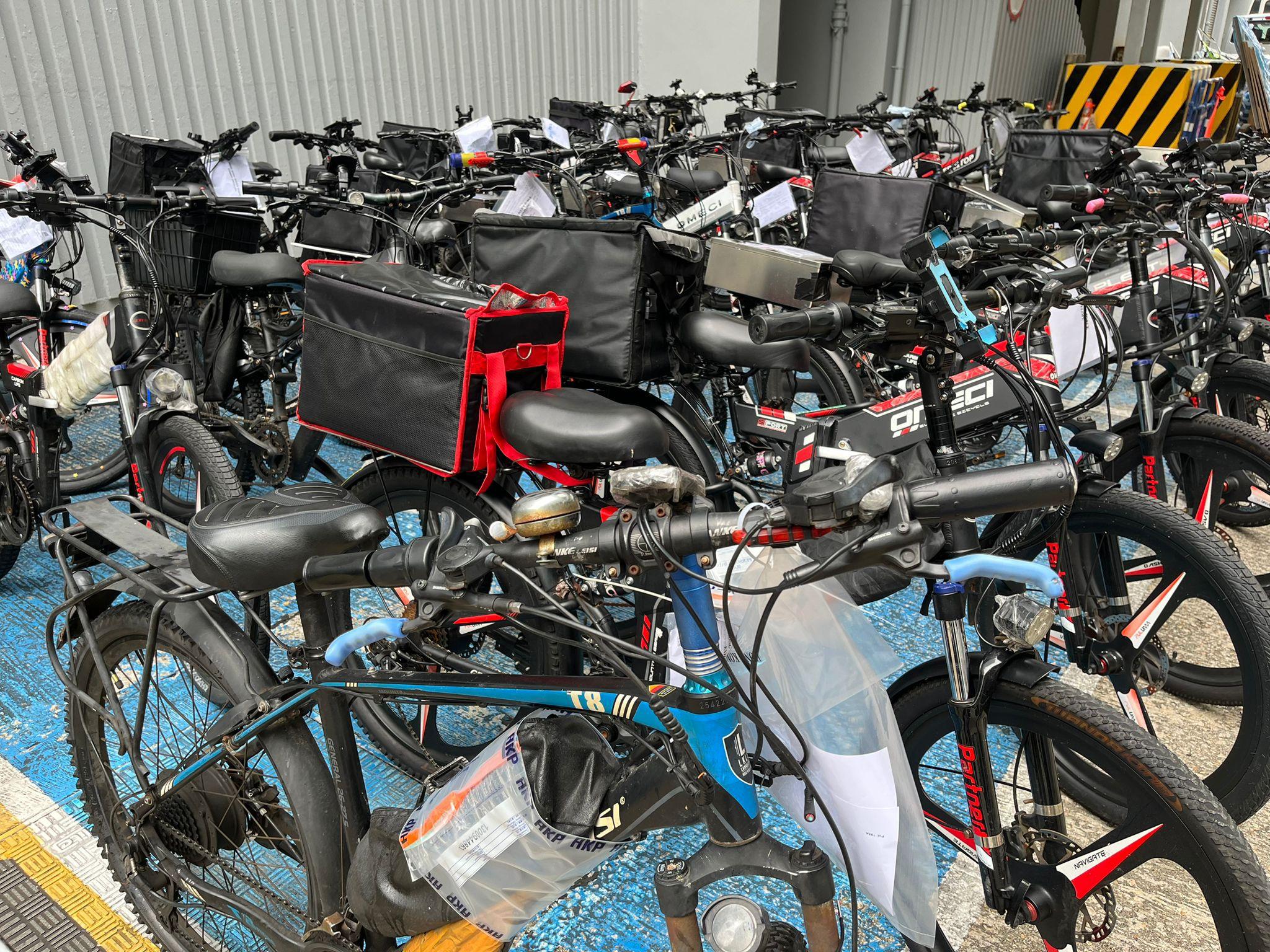 警員以涉嫌「串謀詐騙」拘捕1名本地男子及6名非華裔男子,年齡介乎36歲至65歲,涉及借出外賣平台帳戶予非法勞工。另外,1名外籍男子及36名非華裔男子,年齡介乎22歲至58歲,則涉嫌「禁止接受僱傭工作」、「駕駛未有登記車輛」、「無有效執照駕駛」、「無有效第三者保險下駕駛」及「駕駛時無帶合規格頭盔」被捕。他們涉嫌為非法勞工,懷疑利用屬於他人的外賣員平台帳戶,進行送遞外賣工作。部分被捕人更在送遞外賣期間懷疑使用電動可移動交通工具。行動中,人員檢獲37輛電動單車。