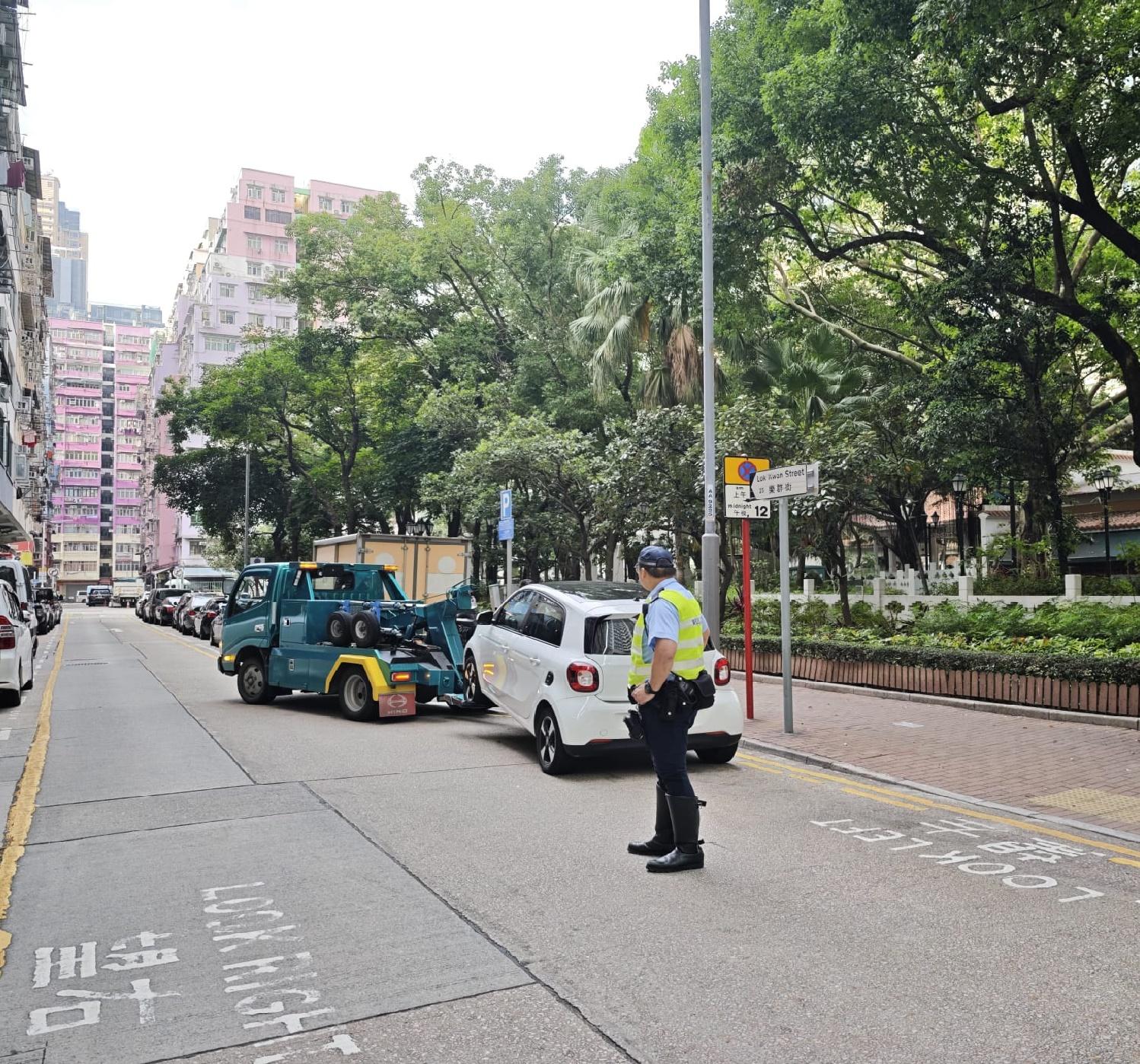 西九龍總區昨日(27日)進行總區交通日,人員在九龍城、深水埗、油尖及旺角的交通黑點採取聯合行動,針對涉及駕駛者和行人不良習慣的違法行為進行執法,當中包括「違泊車輛對道路造成嚴重阻塞」、「沒有讓班馬線上的行人先行」、「駕駛時手持手提電話」、「非法進入黃色方格路口」、「不小心駕駛」和「不依交通燈號過馬路」等。