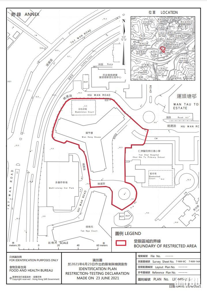 政府晚上7時起圍封患者所住的運頭塘邨運亨樓,要求範圍內人士接受強制新型肺炎病毒測試,目標明早7時半完成。政府發言人解釋,該處今日發現一宗感染源頭未明初步確診個案,初步顯示涉及變種病毒株,經評估後相關區域感染風險有機會較高,政府經檢測呈陽性後決定「封區」。