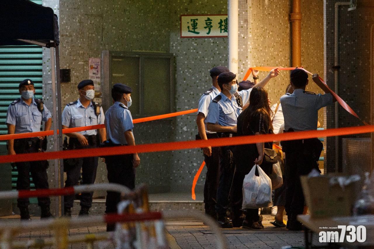 大埔運頭塘邨運亨樓有一名27歲男住戶初步確診,當局晚上7時開始圍封大廈。(蘇文傑攝)