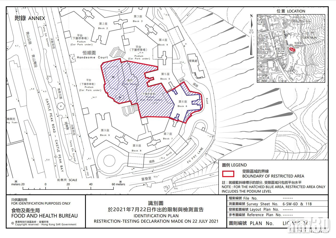 屯門恒順園6座「封區」範圍。(政府新聞處)