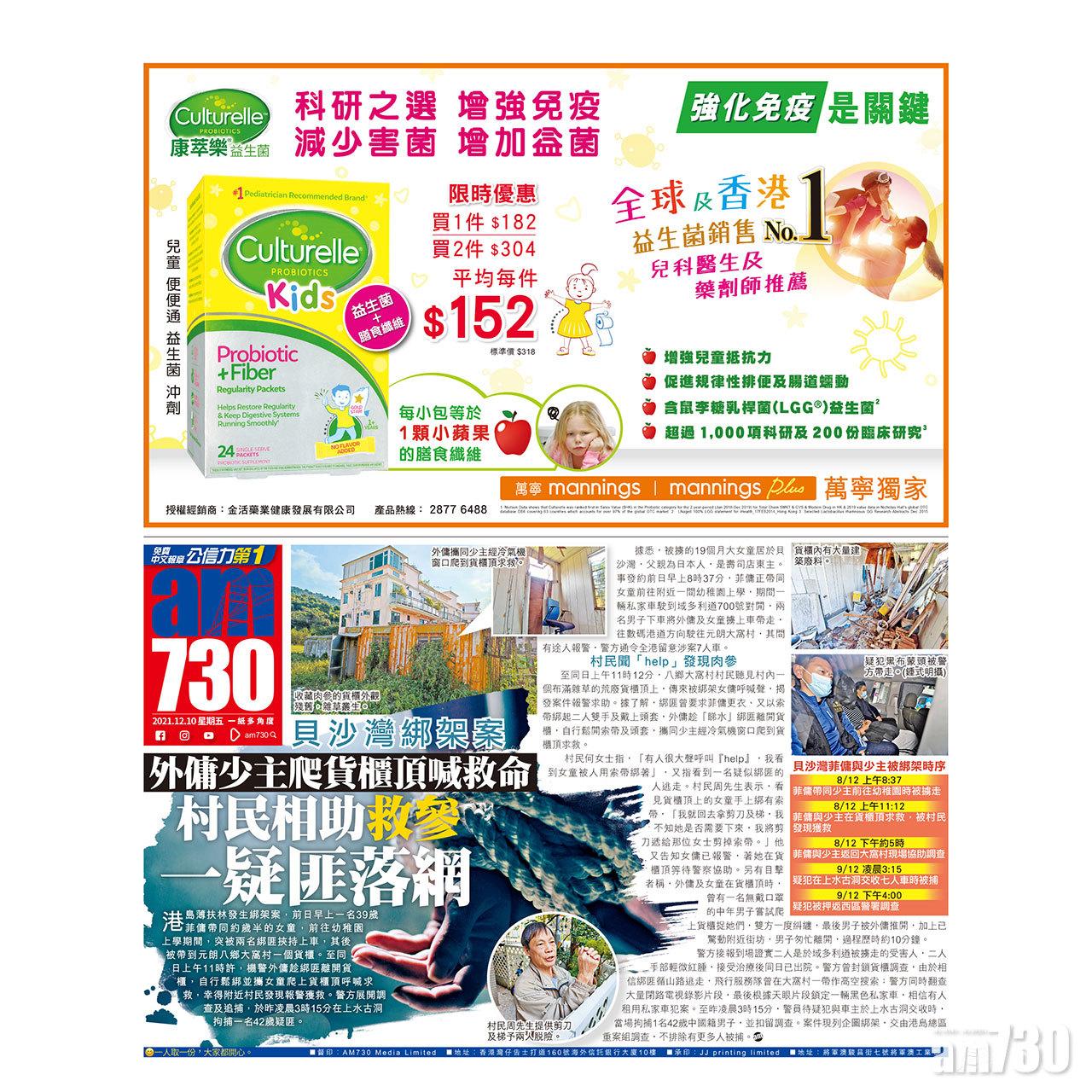 港島薄扶林發生綁架案,前日早上一名39歲菲傭帶同約歲半的女童,前往幼稚園上學期間,突被兩名綁匪挾持上車,其後被帶到元朗八鄉大窩村一個貨櫃。至同日上午11時許,機警外傭趁綁匪離開貨櫃,自行鬆綁並攜女童爬上貨櫃頂呼喊求救,幸得附近村民發現報警獲救。警方展開調查及追捕,於昨凌晨3時15分在上水古洞拘捕一名42歲疑匪。