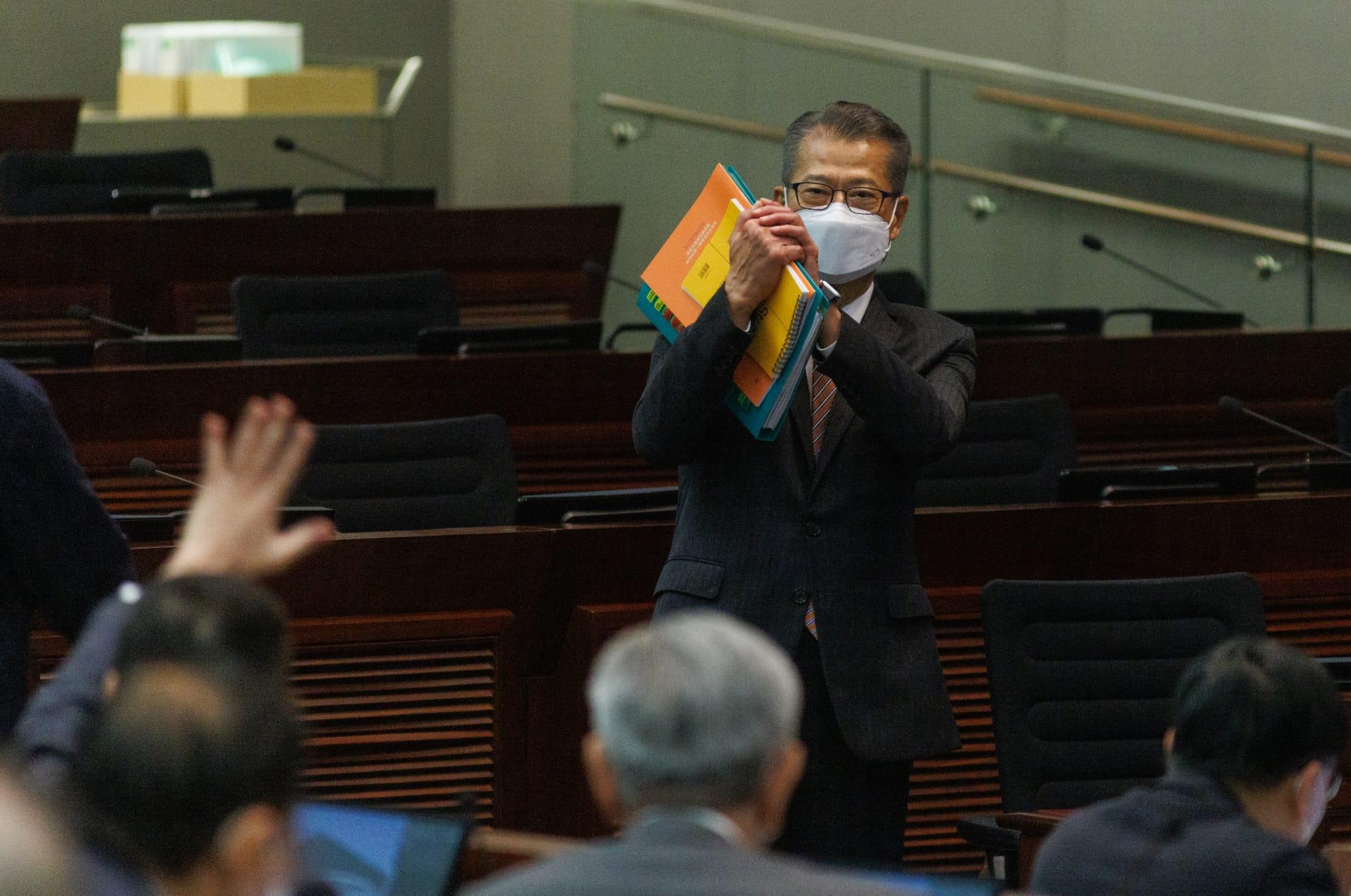 陳茂波指,香港比新加坡有有真山好玩好多。圖為他今早出席立法會。(蘇文傑攝)