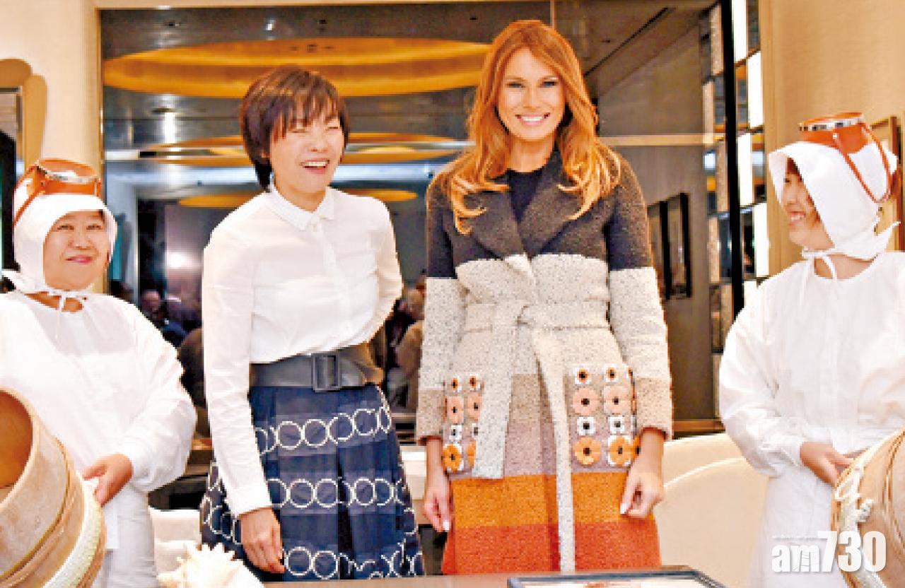 美日第一夫人參觀一間高級珍珠店,了解日本採珠文化。