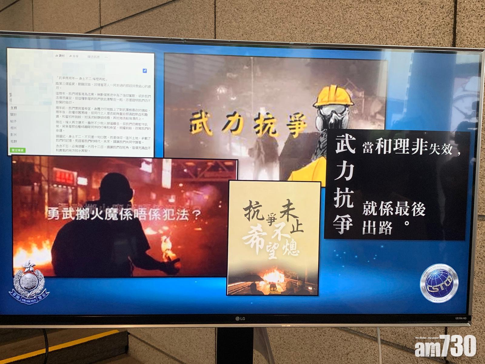 警方向傳媒展示「賢學思政」於前日上載於Facebook的貼文。
