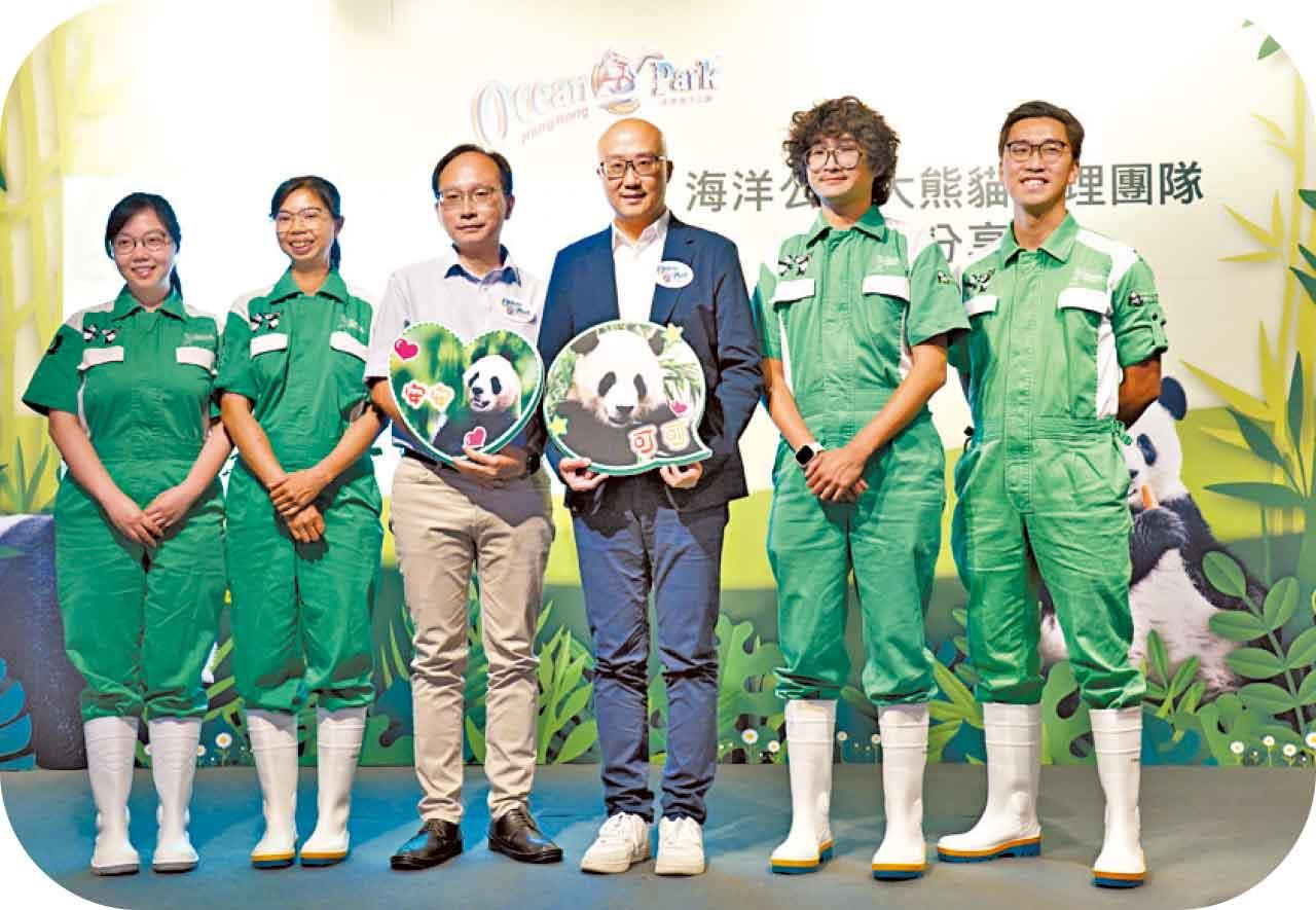 海洋公園照顧團隊分享大熊貓現況。(吳康琦攝)