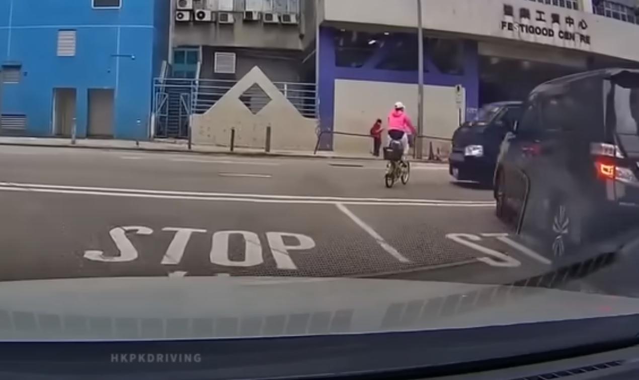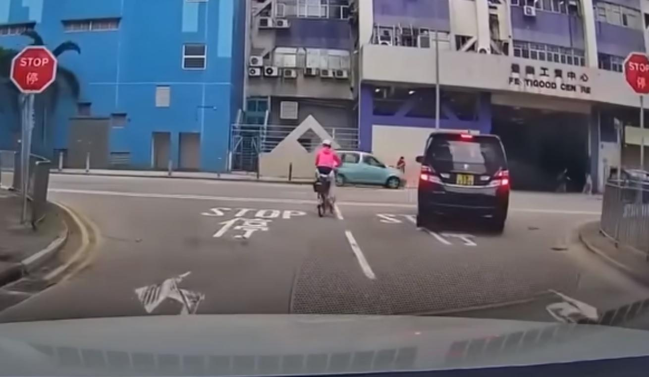 今日(14日)早上7時38分,一名身穿桃紅色外套及戴上白色鴨舌帽、年約50歲婦人,騎單車沿粉嶺安居街右線行駛,駛至安居街及樂業路交界時,遇到一輛客貨車在右線準備右轉,於是切線至客貨車左邊,企圖爬頭。當她踩出樂業路時,頭轉向左邊查看,疑見沒有車於是繼續踩,詎料頭轉回右方時,另一輛沿樂業路行駛的客貨車已經駛至,司機亦立即響號提醒,惟未及她回過神來,已經被客貨車迎頭撞至飛墮地上,單車上物品散落一地,其後她仍然清醒,能夠慢慢自行爬起。客貨車司機報警。