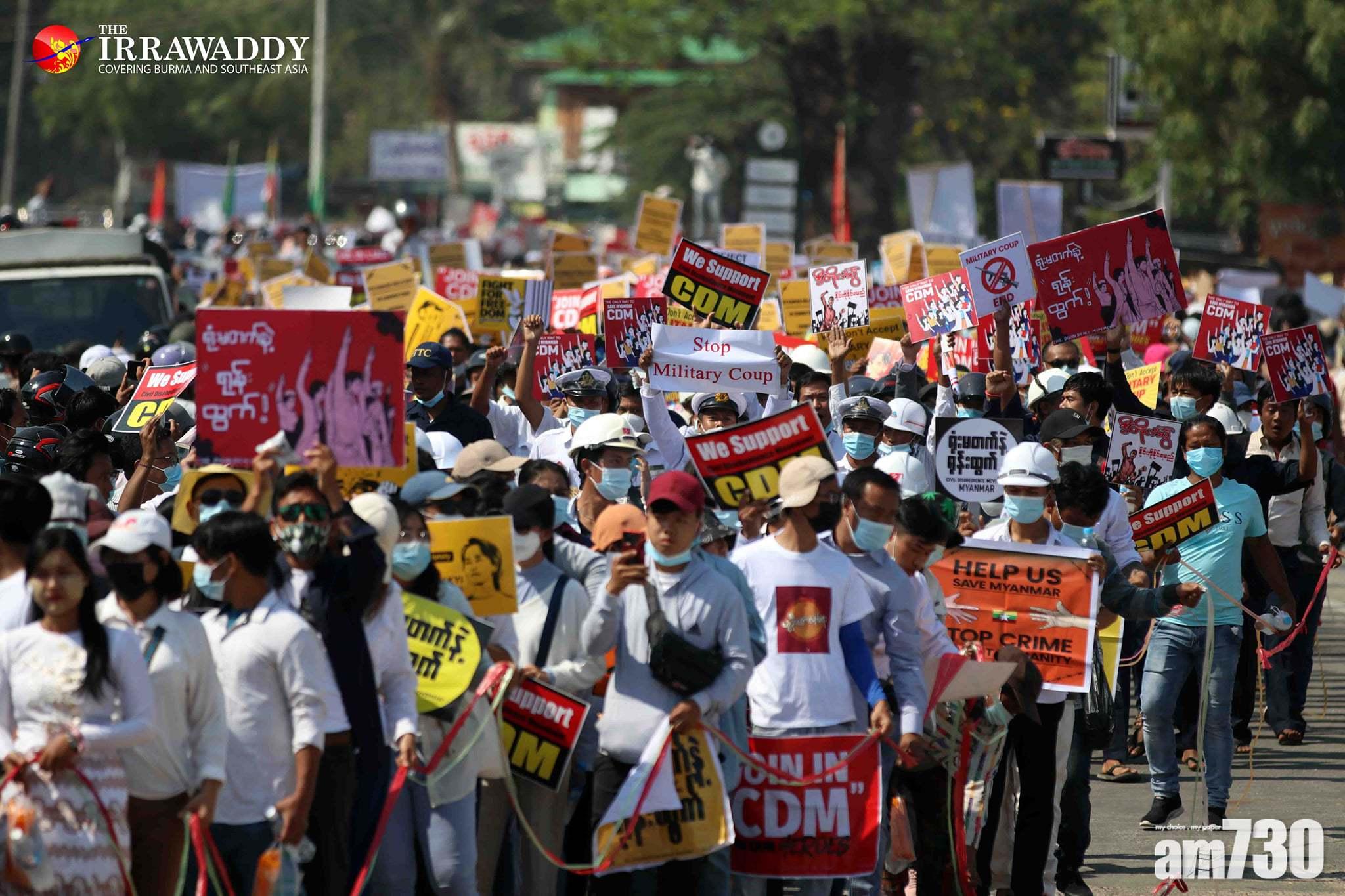 緬甸多處大批民眾無視軍方「參與示威可能有人命傷亡」的警告,周一響應號召再上街抗議或參與全國大罷工。