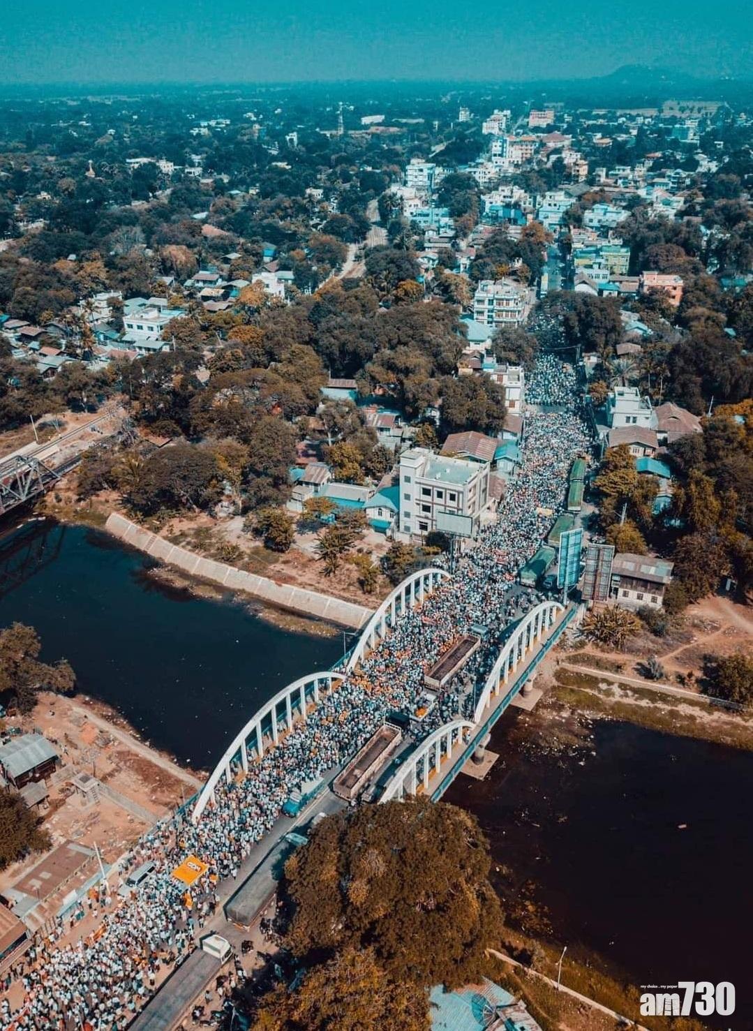 曼德勒轄區城鎮Kyaukse大批民眾遊行。(互聯網)