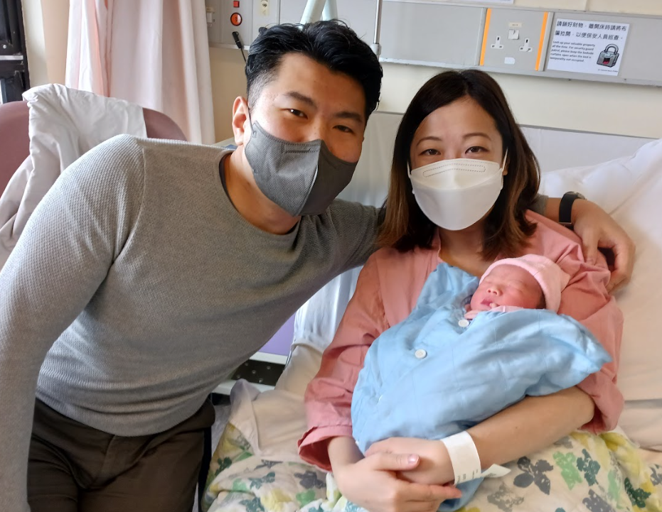 一名女嬰零時02分在東區醫院誕生,程太為新手媽媽,程先生說期望女兒簡單、健康成長。(醫管局提供)