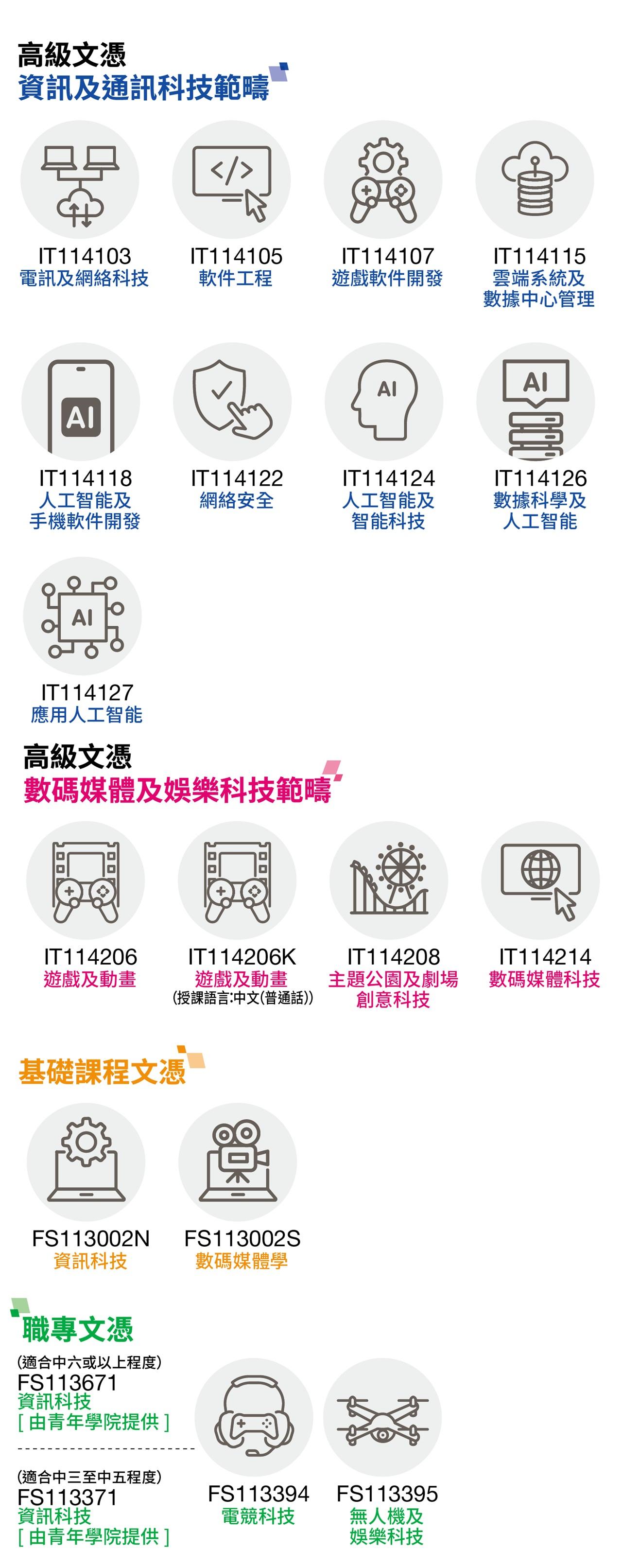 HKIIT於2025/26學年將開辦17個高級文憑及其他文憑課程,範疇包括資訊及通訊科技以及數碼媒體及娛樂科技。