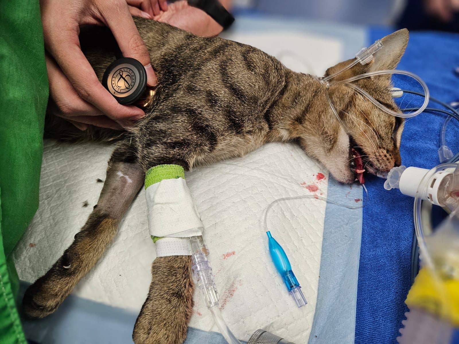 毛守救援上載多張照片和多條影片,可見唐貓倒在馬路,附近遺下血跡,一把女聲表示「撐住呀貓貓」。毛守救援指出,受傷唐貓已經接受絕育和剪耳,頸部戴上蝨帶,估計有主人,呼籲如有街坊認識受傷貓咪主人, 請致電6999 4221。