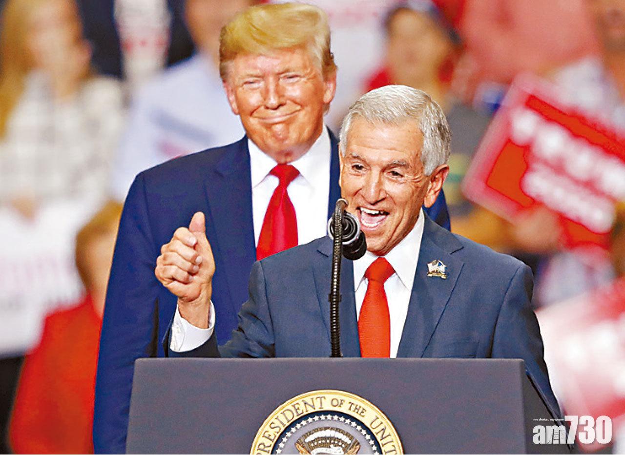 路易斯安那州長選舉日前舉行,特朗普(後)出席里斯波內(前)的造勢大會,惜未能助對方勝出。(美聯社)