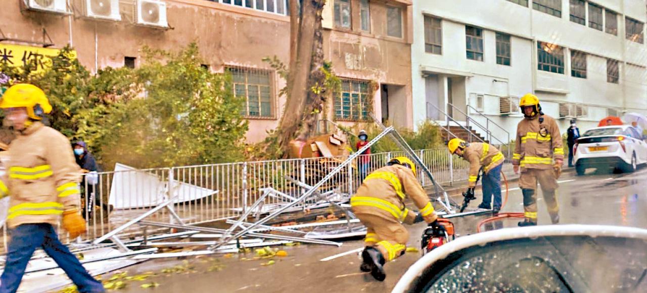 天文台於上午11時左右再發出特別提示,指會有猛烈陣風吹襲本港,尖沙咀天星碼頭在11時05分曾錄得每小時約100公里的猛烈陣風,本港部分地點更因強風釀成意外,其中沙田廣場與沙田中心之間一條行人天橋,一排長約10米、高約2.5米的圍板,疑被強風吹倒塌下,有途人走避不及被擊中,造成1男5女受傷。當中2人在現場包紮後拒絕送院,其餘4人則送到威爾斯醫院治理。
