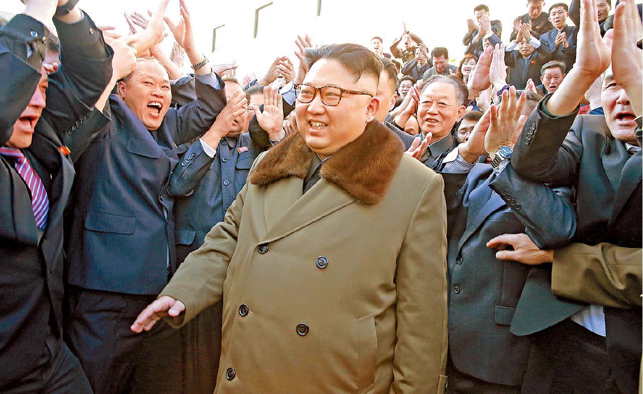 金正恩日前參觀白頭山的建築研究中心。(路透社)