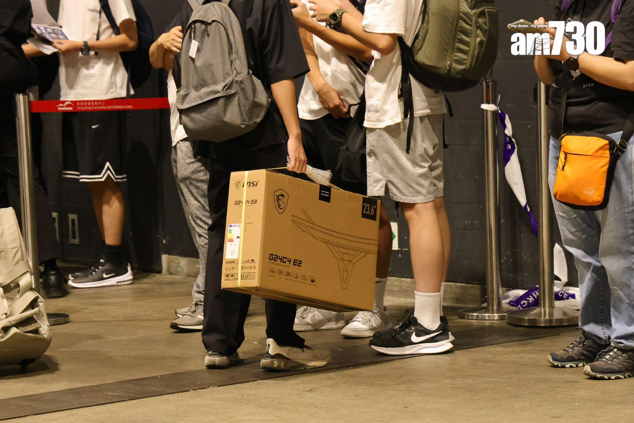 電腦節2024|排頭位市民早一日下午5時到場「瞓街」 用1元買直驅賽車方向盤(吳康琦攝)