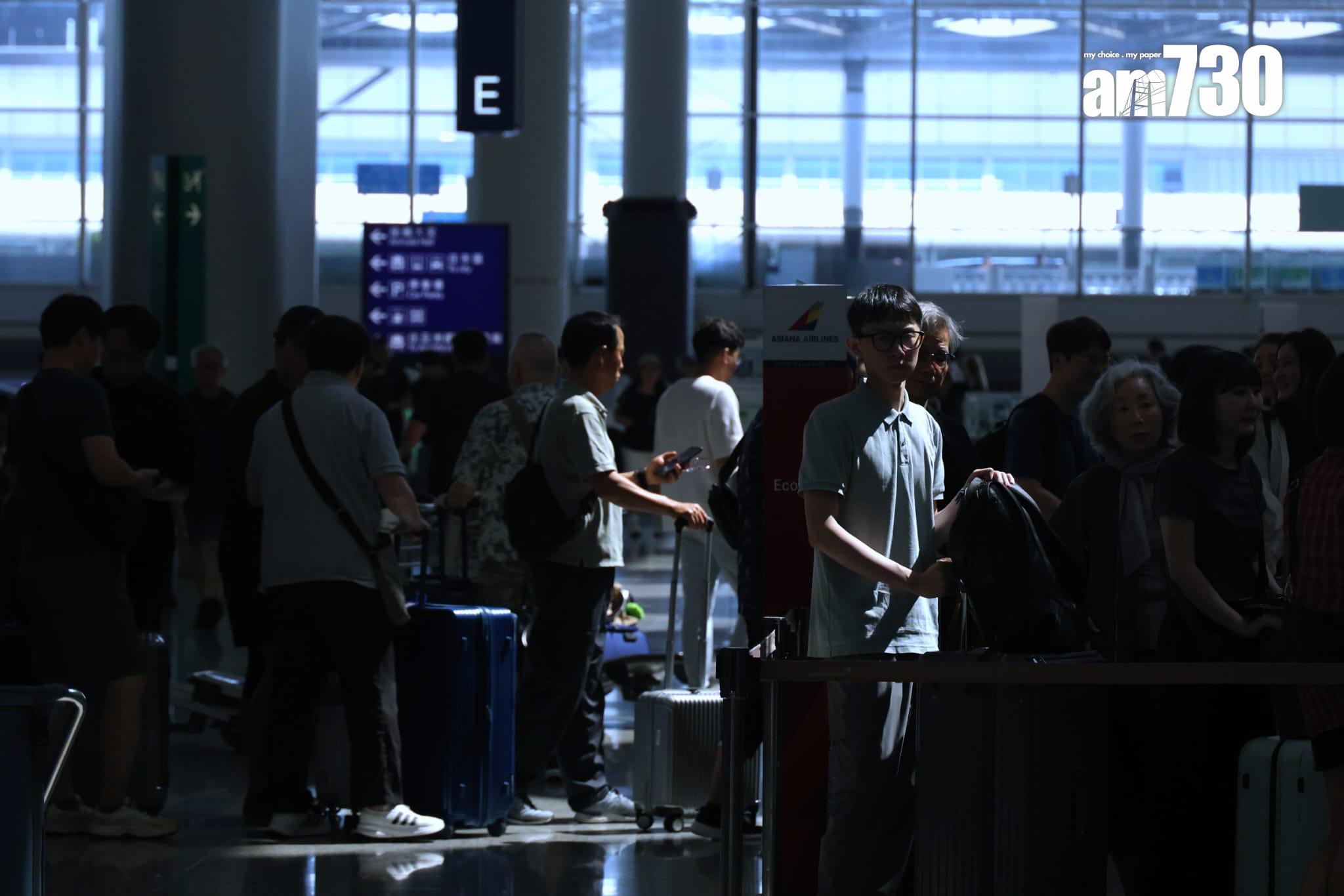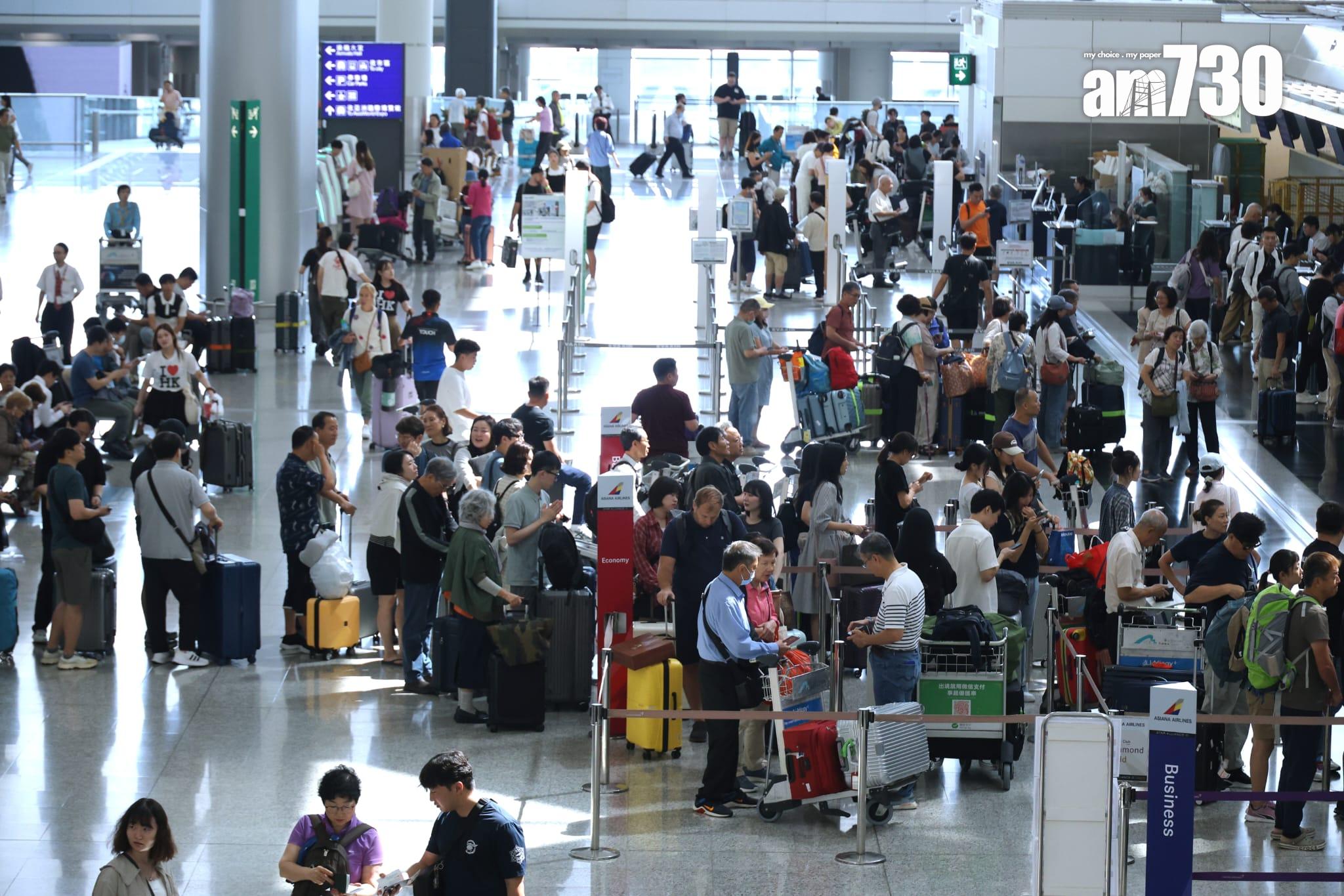 受風暴影響,過去兩日逾千班航班延誤或取消,機場今早陸續恢復航班升降。不少市民及旅客提早到機場辦理登機手續,準備出發。