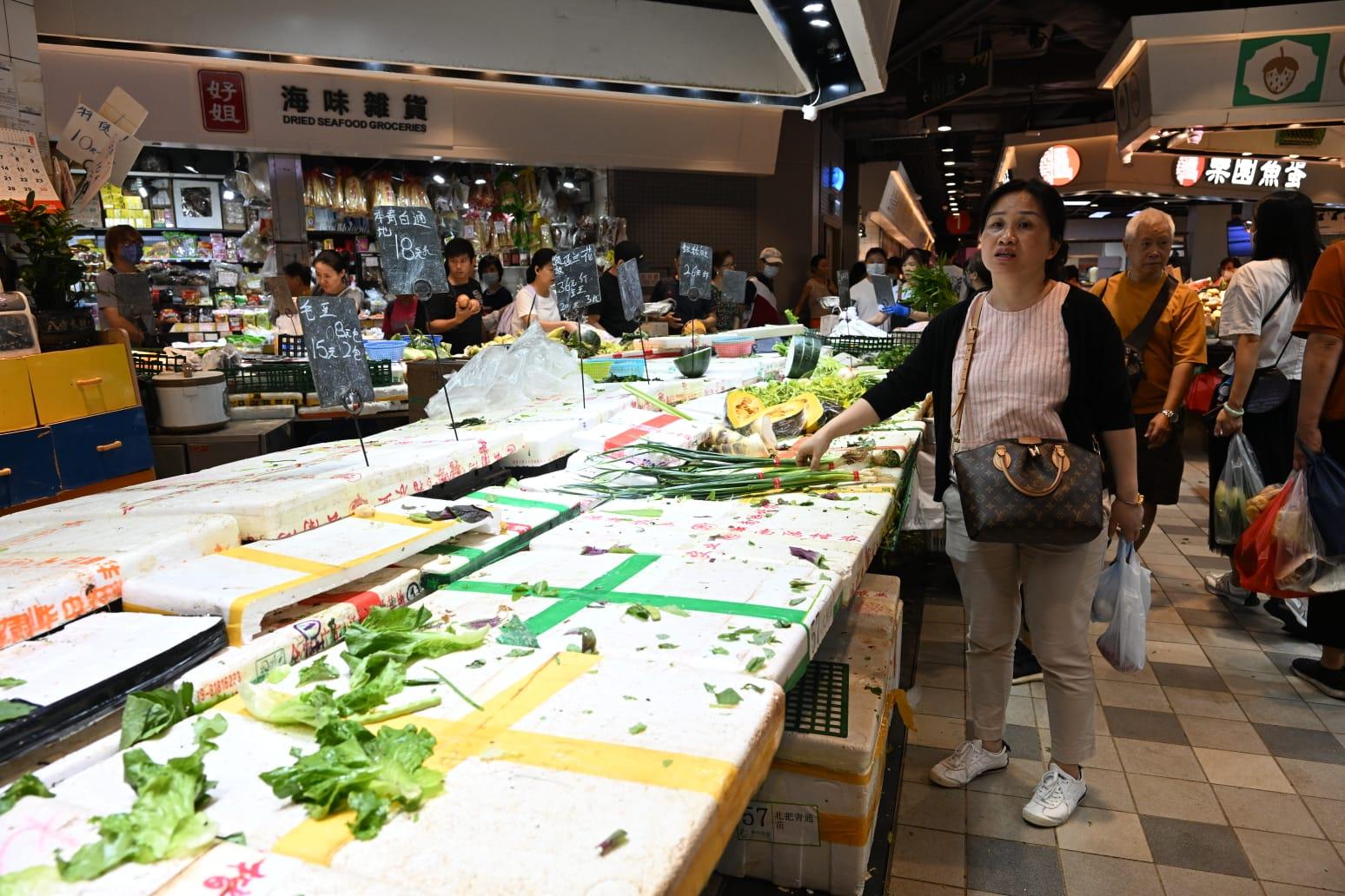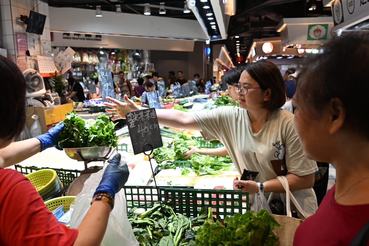 市民趕及到街市購買蔬菜。(陳奕釗攝)