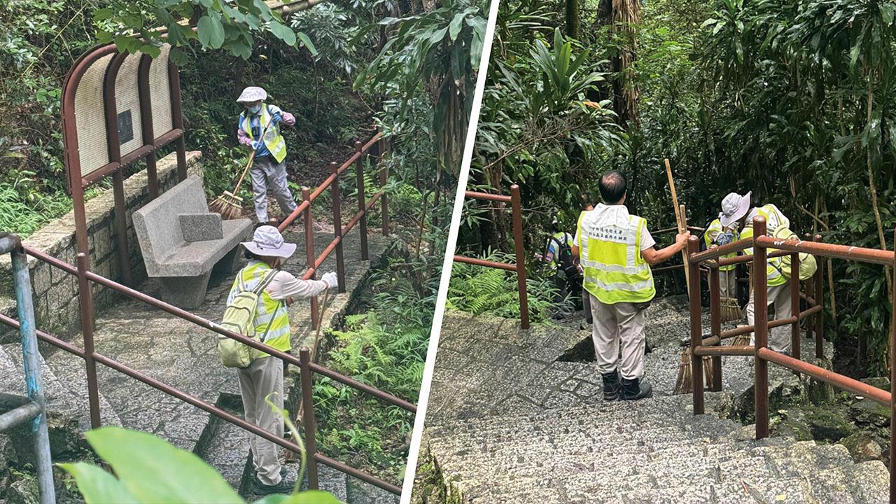 定期組團上山執垃圾的香港餐廳東主、Instagram用戶「the_night_spyder」,昨日在社交平台引述執垃圾隊員稱,在飛鵝山發現有一群食環署防治蟲鼠服務承辦商人員,收集垃圾時並未手持垃圾鏟和垃圾膠袋,而是用掃把直接將路面和梯級的垃圾掃進山坡,並附上數張照片稱「呢件事今次有圖有真相」。