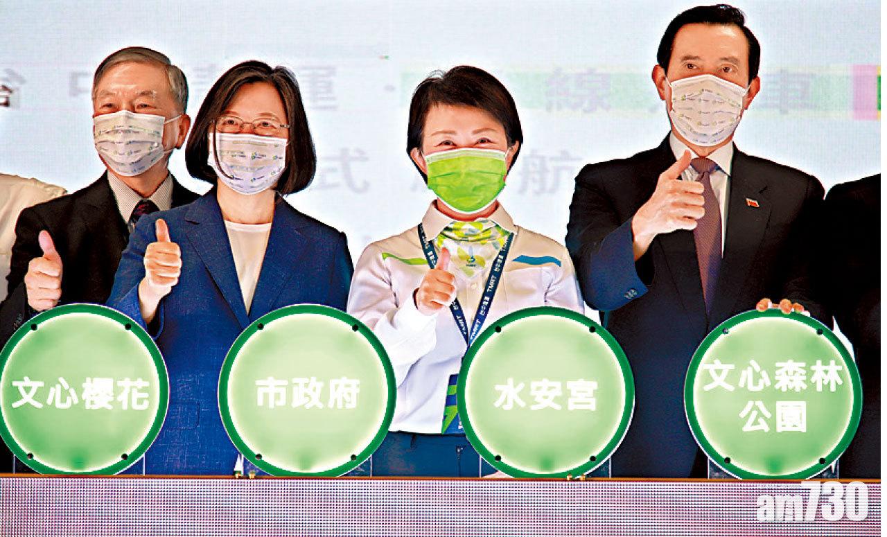 (前排左起)蔡英文、盧秀燕及馬英九出席通車儀式。(互聯網)