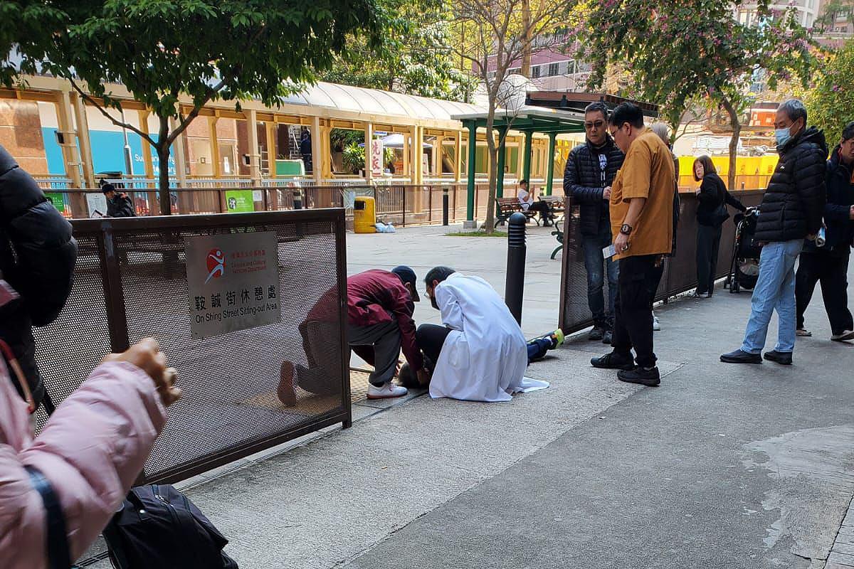 馬鞍山一名老翁在街頭跌倒,有醫生從附近診所跑出協助。(FB群組「馬鞍山之友2.0」圖片)
