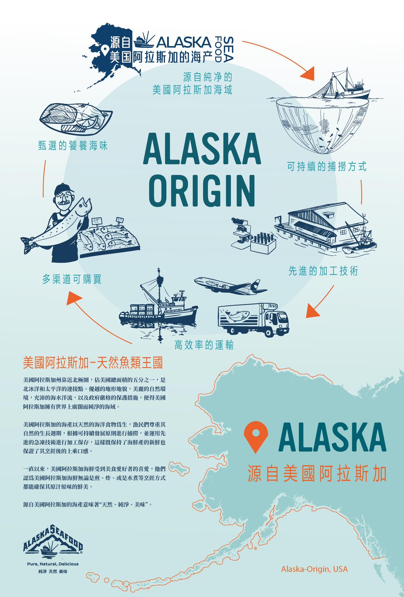 美國阿拉斯加的海鮮源自北太平洋野生原始水域,特別具野生海鮮的風味,顏色和質地優生。相比許多其他魚類具有更高水平的 omega-3脂肪酸和更低水平的脂肪。