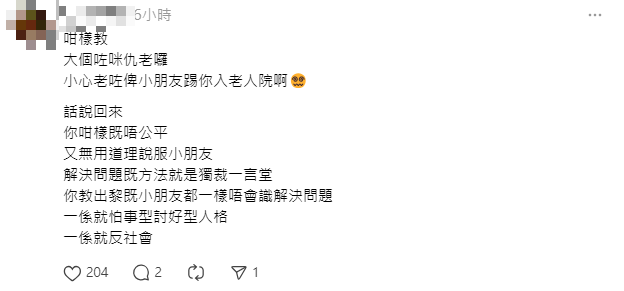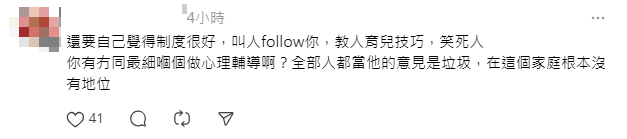 網民留言問「你屋企係咪警察總部」,暗指方法不適用於育兒。另外有網民分享自己經歷,自小被人管得太嚴導致他有服從性人格。