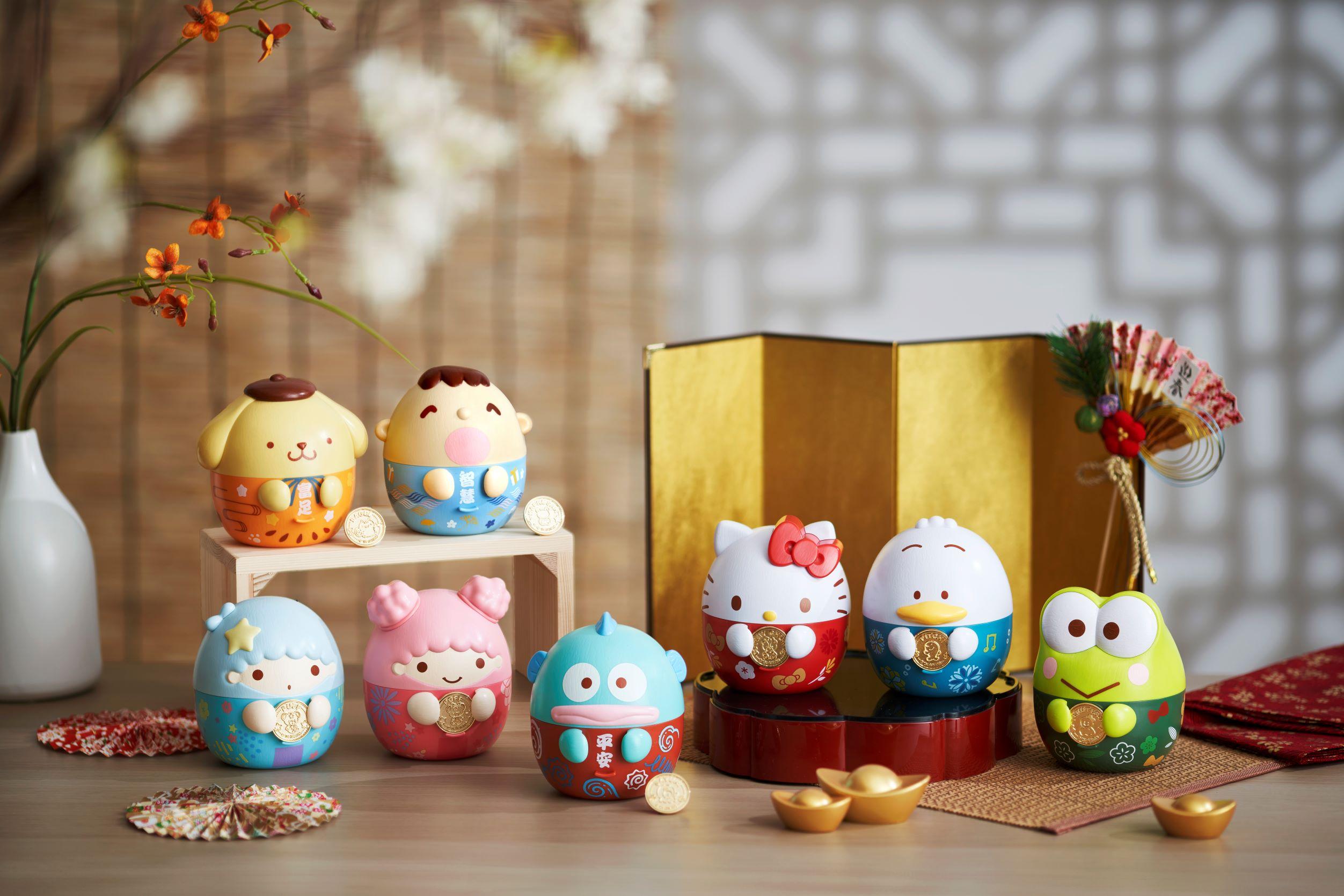 8 款「Sanrio characters 圓咕 Luck」錢罌特別以日本「達摩不倒翁」、「招財貓」作為設計靈感,揉合8位人氣大熱的 Sanrio characters 角色,獨家創作的圓咕碌超萌造型,每位角色既可愛又充滿福氣,再配上賀年圖案及花紋,例如桃花、幸運星星及賀件煙花等,絕對是賀年必備!每款錢罌各印有獨特的祝福詞包括:「開運」、「招財」、「智慧」、「平安」、「健康」、「富足」、「大吉」及「結緣」,寓意大家新一年好運連連,意頭十足,每款錢罌更附有專屬的幸運代幣,於金屬亮面材質上印有8位 Sanrio characters 相屬的好朋友,可謂喜上加喜!