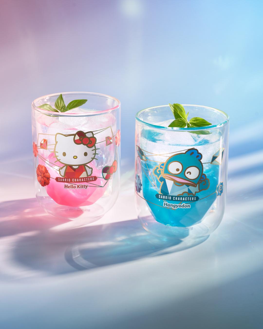 是次活動聯乘4位Sanrio超人氣角色Hello Kitty、Cinnamoroll玉桂狗、Kuromi及Hangyodon水怪,將可愛角色圖案融合於杯身,杯子內層更暗藏驚喜,鑽石型切割面設計在倒入有色飲品後,杯身將化成閃閃發光的寶石,視覺效果直接滿分。
