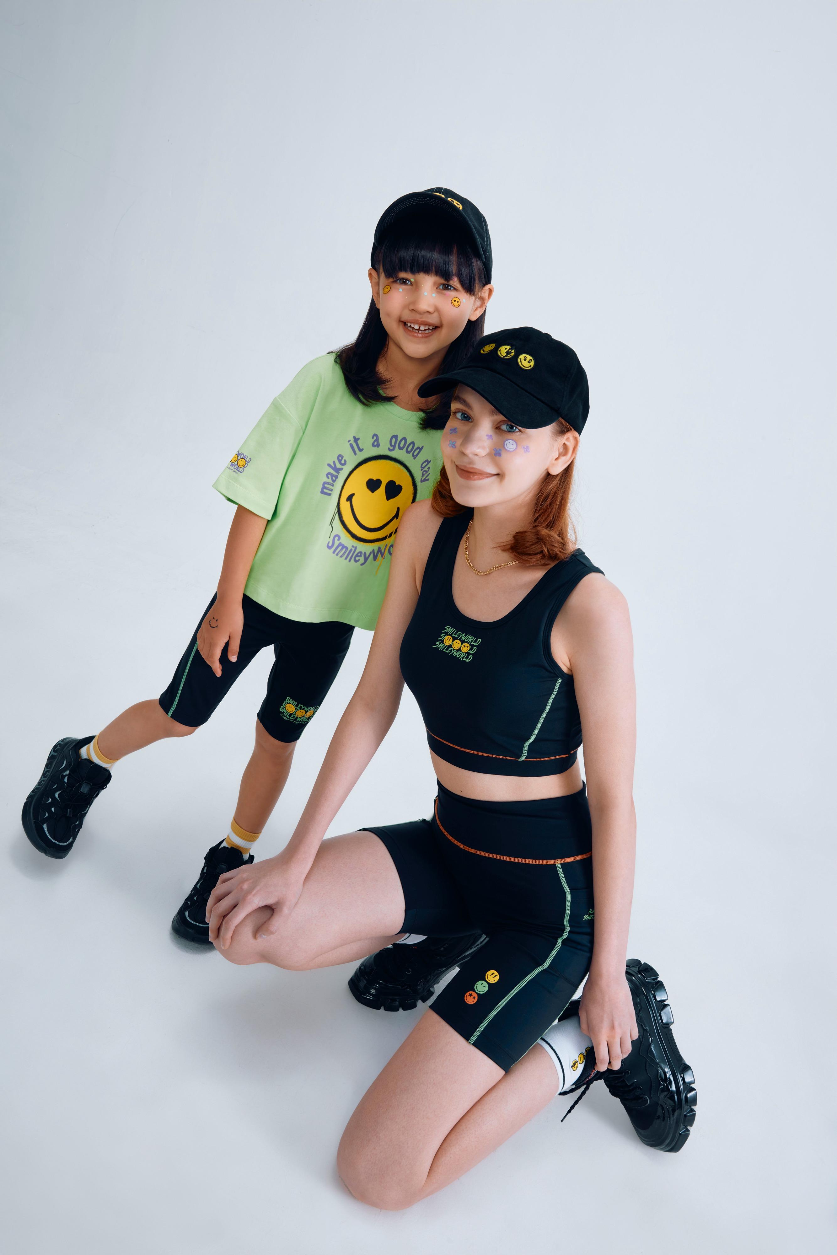 是次聯成系列的服裝及配飾印上了多款正能量標語,亦希望利用色彩繽紛的「微笑」印花圖案,傳播「正能量」與快樂。系列包括黑白色系單品加上搶眼的黃色SmileyWorld笑臉、充滿玩味感的螢光色系T-shirt。除此之外,女裝還推出運動服裝系列,寬鬆設計配搭舒適快乾物料,讓的運動風格頓時充滿活力。至於童裝設計亦承襲了成人款式設計,只要簡單加頂笑臉Cap帽,即時襯出一身家庭裝出遊。