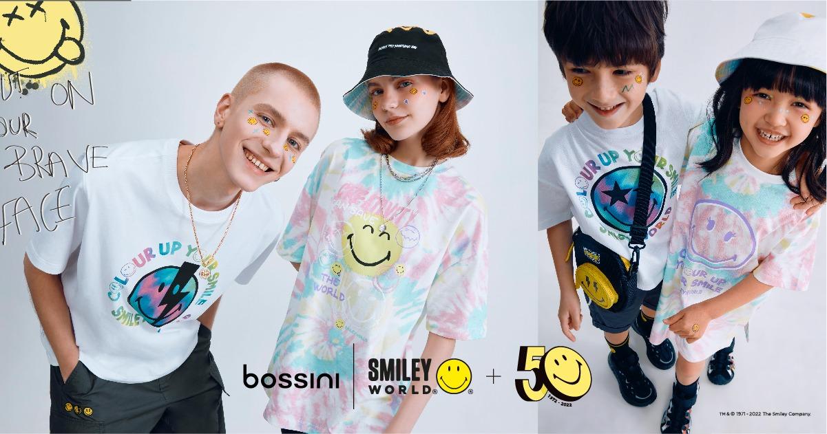 兩年多的疫情,大家總是蒙著咀,收起了燦爛笑容。為帶來更多正能量,bossini與英國品牌Smiley聯乘,推出一系列以Color Up Your Smile為主題的產品,迎接Smiley創立50週年之餘,也為大家打造充滿微笑的Smiley World。系列除了男女裝之外,也有同時推出童裝,為一家大細打造型格親子裝。