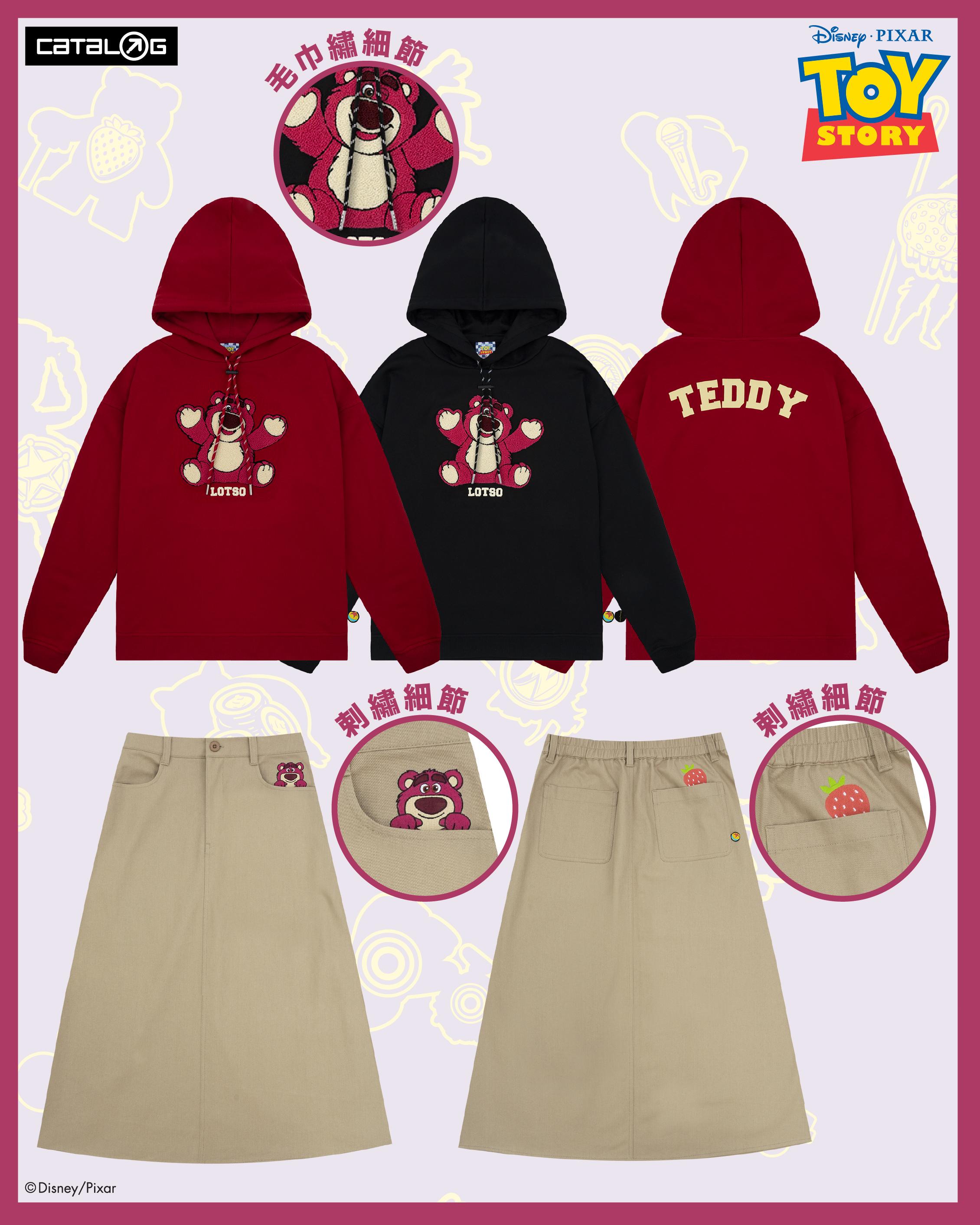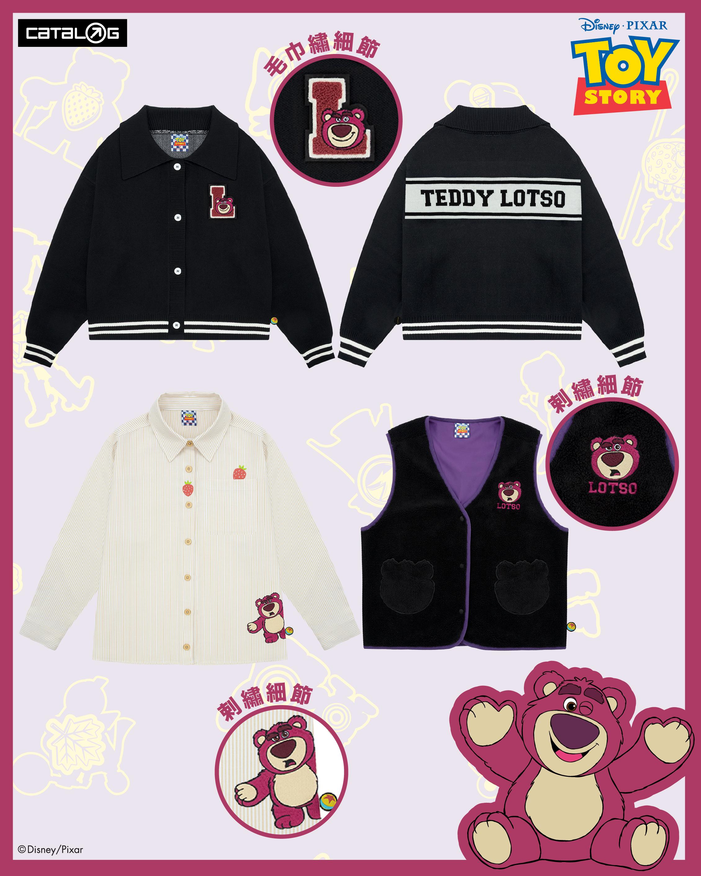 今個冬天,Disney Pixar人氣動畫電影《Toy Story》邁向30週年!為重溫這份溫暖回憶,Catalog 與《Toy Story》聯乘,推出Catalog Disney Pixar Toy Story全新合作系列。是次系列以Toy Story中三位人氣角色:三眼仔、 抱抱龍以及勞蘇作為設計,主打一系列獨特又具標誌性的冬日單品,包括毛毛外套、恤衫、衛衣與半身裙等。另外多款精緻週邊登場,重點推介全新設計的Toy Story刺繡吊飾盲盒系列以及30週年限定紀念衛衣及毛墊!