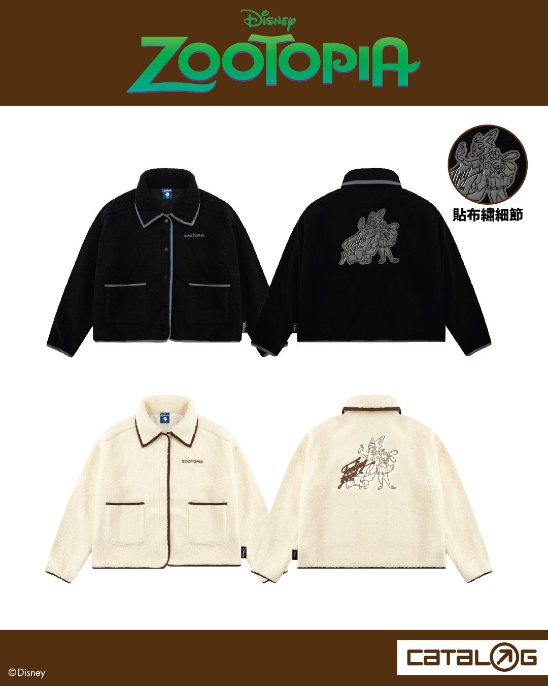 本次全新推出的Catalog Disney Zootopia系列,推出全新外套款式:毛毛外套分別推出黑色與卡其色兩款,前胸點綴精緻的「Zootopia」字樣刺繡,背面則飾以NickJudy的拼布刺繡圖案;而長袖外套有Judy主題針織外套,特別加入刺繡邊花紋設計增添細節。同時推出小夾棉長袖外套,前幅以車花章打造歐美風格,背面印有Nick圖案,同系列更備有藍色調的Judy款式。
