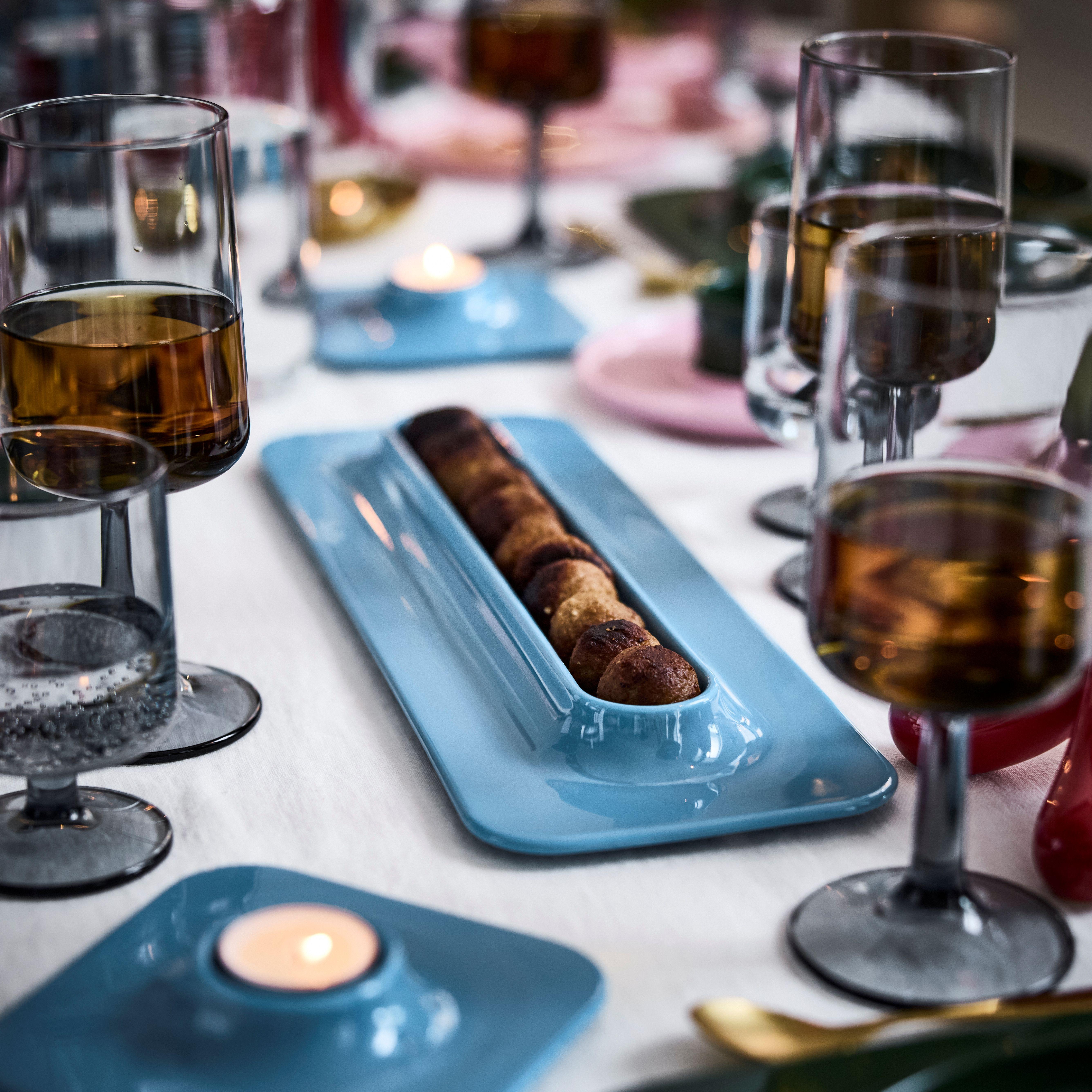除了話題十足的肉丸專屬餐盤,Gustaf Westman將其標誌性「俏皮幾何」創作延伸至兩款全新餐具。VINTERFINT杯連底碟,結合設計師童年回憶:兒時祖母在聖誕時準備烘焙點心和瑞典冬季必喝的熱紅酒「glögg」。設計放大了杯碟尺寸,讓餅乾與飲品可以一同擺放和移動,讓下午茶時光添上童趣與溫度。而另一款VINTERFINT 餐碟同樣使用圓心與方框交疊設計,一體成形,方形外框可擺放餐具。兩款餐具有墨綠和糖果系粉紅兩色選擇,讓餐桌時光變得歡樂。