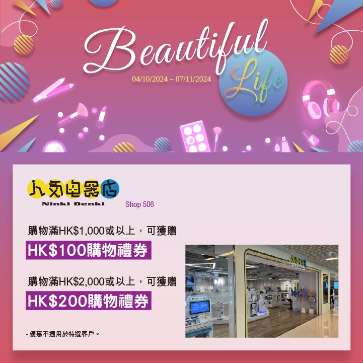 iSQUARE國際廣場推出「Beautiful Life」獎賞活動!10月4日起至11月7日期間,消費滿指定金額即可以免費換走星級禮品,包括防漏飲水杯、日本品牌卡包、羊絨圍巾等!另外美容、電器、娛樂及生活指定商戶更有折扣優惠,部份貨品低至一折,想知詳請即睇內文。