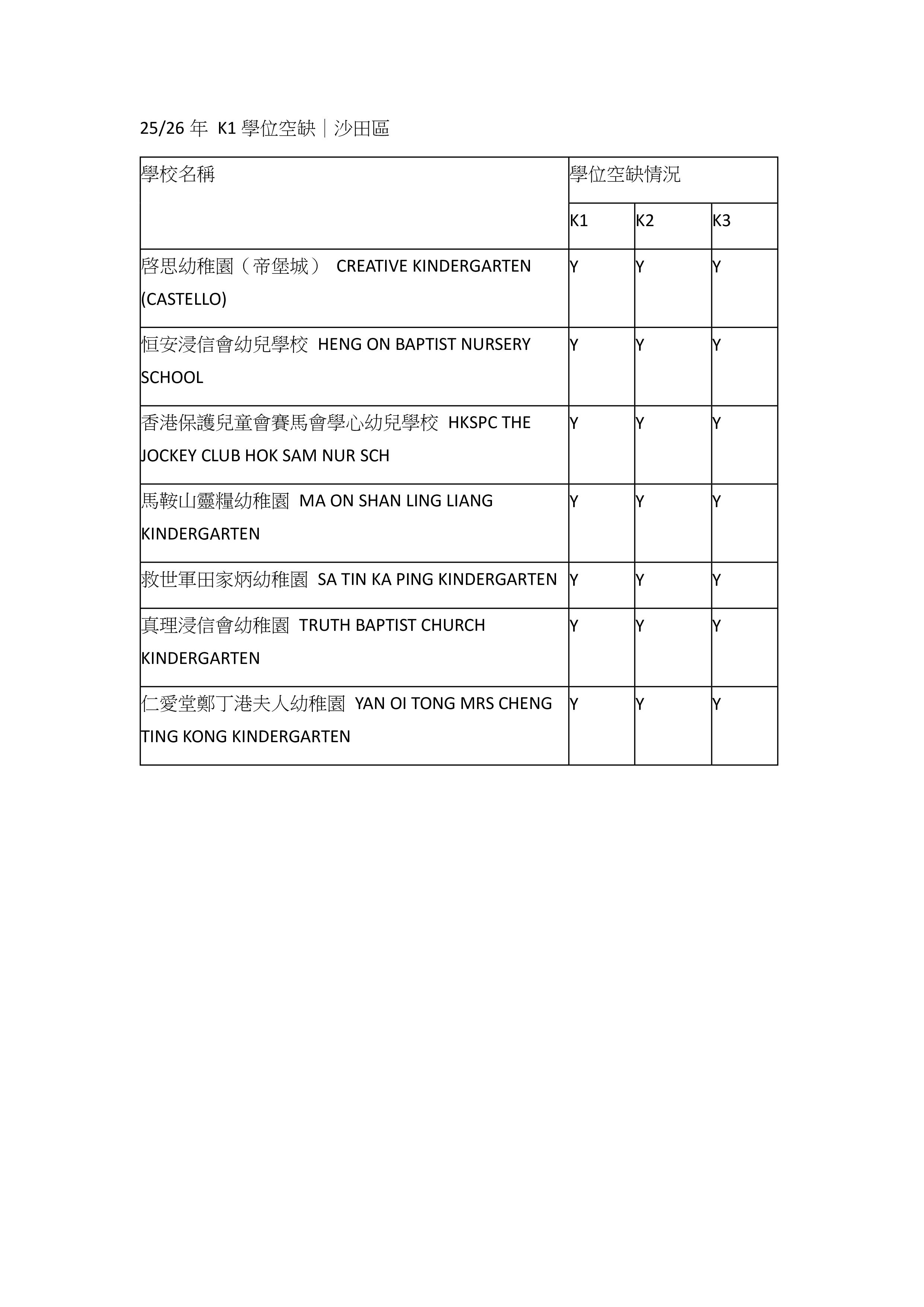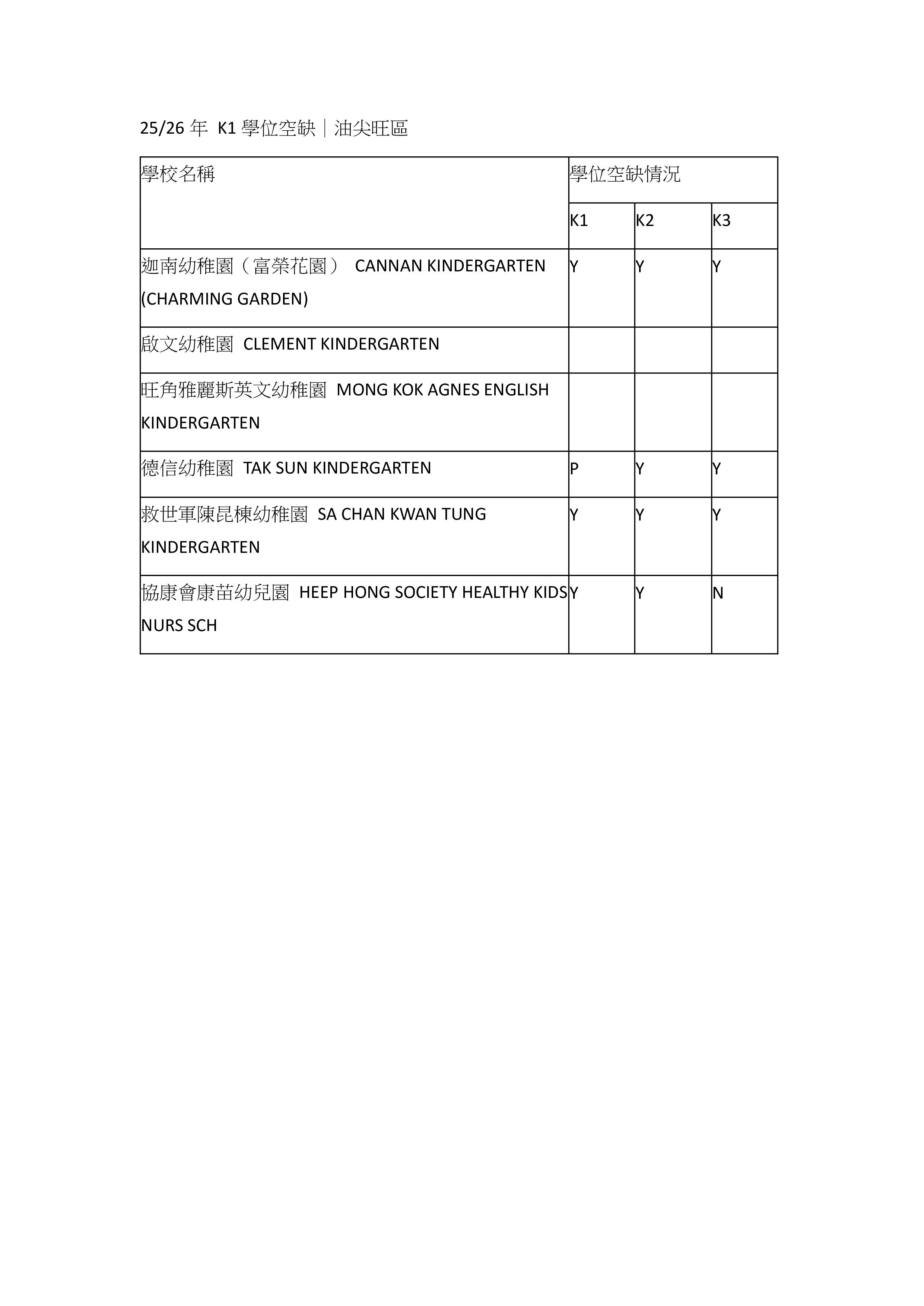 25/26年學位空缺幼稚園名單|729間幼稚園有學位空缺