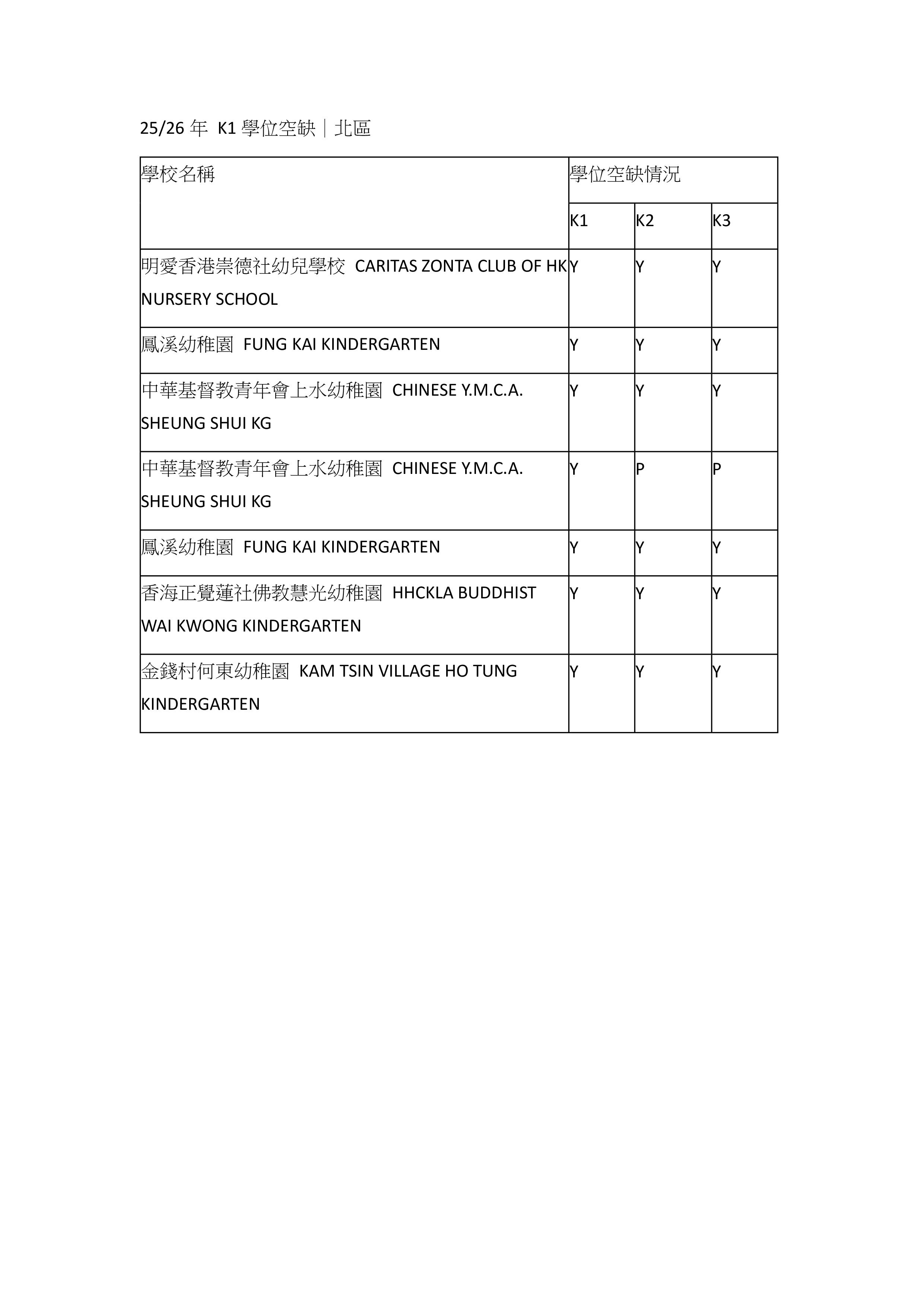 教育局以Y、N、P及NA代表不同學位空缺情況。